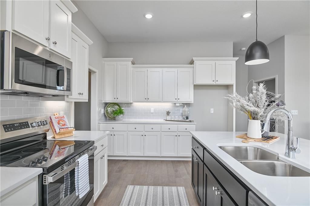 10,000 BUILDER INCENTIVE to be used as buyers choice of upgrades, closing costs, decor, etc!!! Must be under contract by 03/01/2026 Move-in Ready Maintenance Provided Ranch Villa! This stunning home features an open floor plan with 10' ceilings, hardwood floors, and a light-filled living room with stone fireplace. The gourmet kitchen includes stainless steel appliances, custom cabinetry, under-cabinet lighting, and a walk-in pantry, plus a main-level mudroom and built-in desk area. The primary suite offers a walk-in closet and beautifully tiled bath. The lower level adds a spacious rec room with dry bar, two additional bedrooms, and a full bath - totaling four bedrooms. Lawn care, snow removal, and exterior maintenance (including roof) are all included.