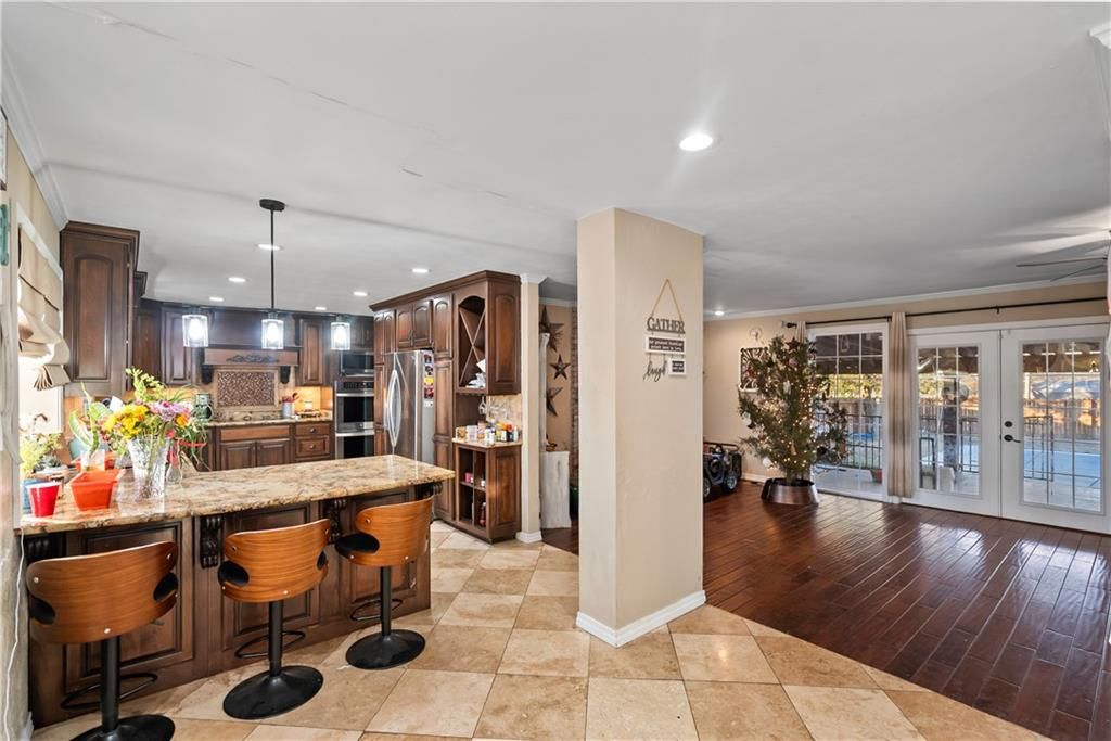 Your corner lot, in-ground pool, out of town, double shop, dream home is here. From the paved drive with the converted garage to the open layout downstairs for hosting and cooking while the family is close. You just can't beat this home! Five full bedrooms with plenty of bonus rooms and office space! Not to mention the walk-out deck in your fenced in yard with your in-ground pool and hot tub! A shop big enough for all your toys, and a man cave built into the other outbuilding! Your dogs can have a separate penned area and not to mention the whole house is hooked up to solar! The pool has been regularly serviced and every lightbulb (over $900 in lighting) has been updated! As well as The HVAC has a few updates! This home simply has it all, call today for your new house!