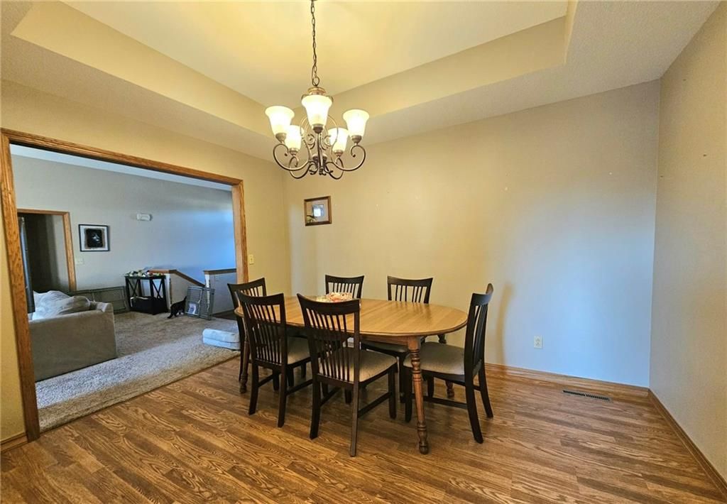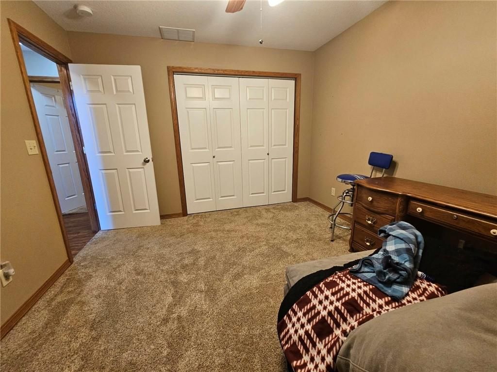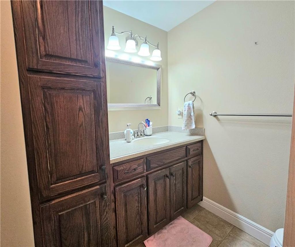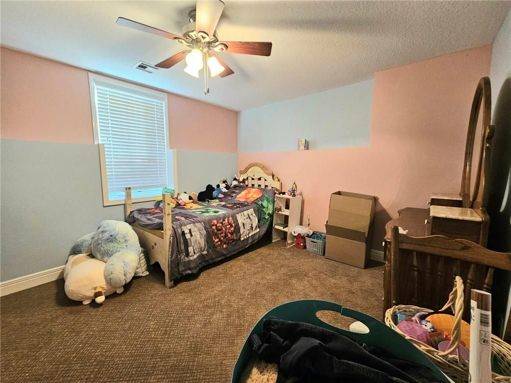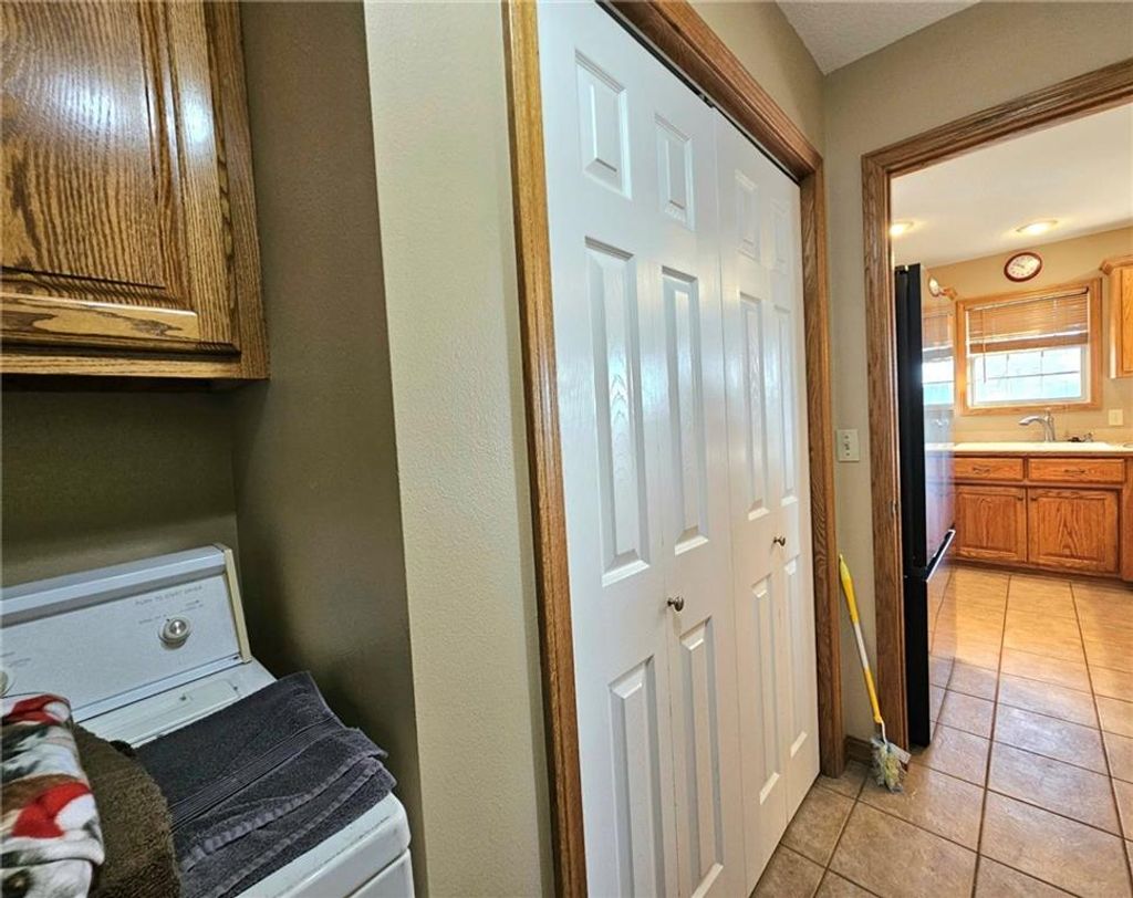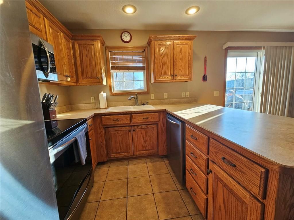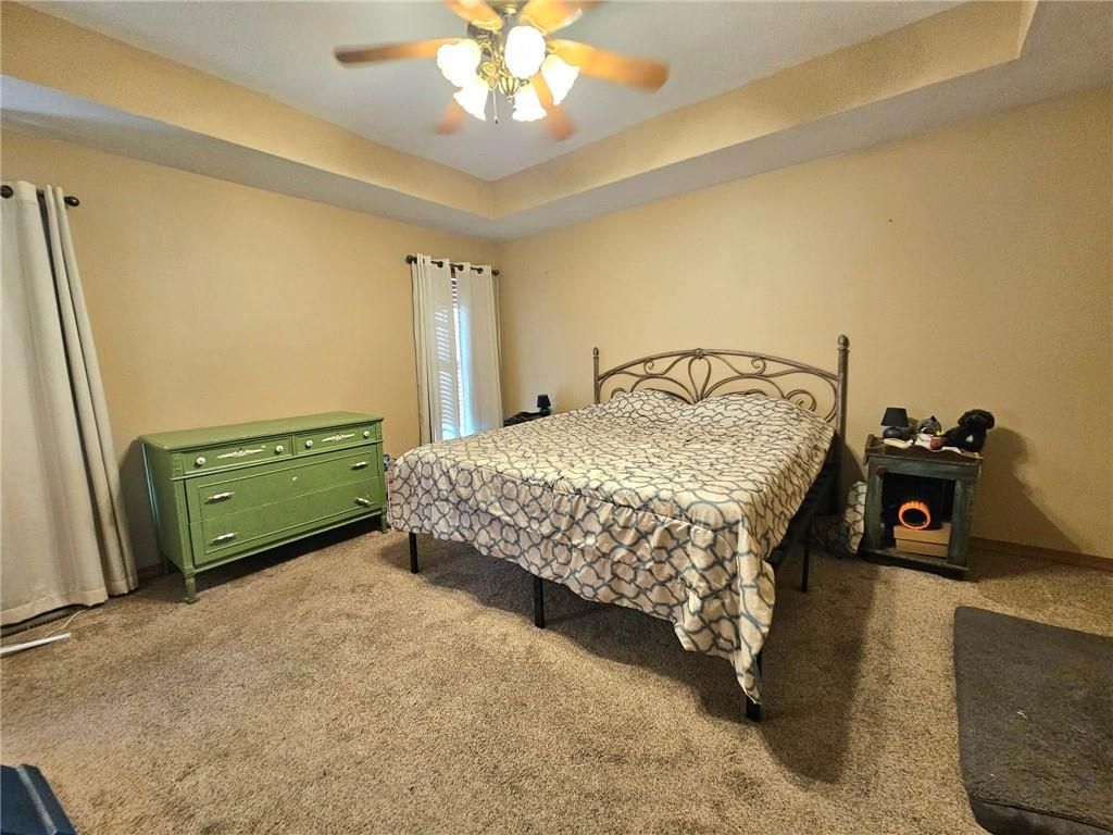 Wonderfully cared for five-bedroom, three-bath ranch home with a full basement featuring egress windows and a dedicated storm room. This home offers a variety of thoughtful storage solutions and architecturally interesting details throughout. The main level includes a tiled entryway, an expansive living room with a gas log fireplace, a formal dining room with wood-look flooring, and a tiled country kitchen with custom cabinetry and a breakfast nook. The breakfast nook features custom-built-in shelving and a sliding door leading to the deck. A laundry room with additional storage is located just off the kitchen and provides convenient access to the attached garage. The primary suite offers a tray ceiling, a walk-in closet, a jetted tub, and a separate oversized shower with seating. Two additional main-level bedrooms are generously sized, with one featuring an arched window and a vaulted ceiling. The basement is an entertainer's dream, featuring egress windows, two bedrooms, each with a walk-in closet, a family room with another gas log fireplace flanked by built-ins, an adjacent recreation room with a wet bar, and a convenient bathroom. Unfinished basement spaces include mechanical systems, including a radon mitigation system with a warranty, a new water heater, PEX plumbing, additional storage, and a storm room to provide peace of mind. The backyard retreat features a wooden privacy fence, a deck accessible from the breakfast nook, a patio, and a prefabricated storage shed. Whether entertaining or quietly relaxing, this space offers something for everyone. The exterior features low-maintenance cement siding and brick masonry. The French drain system features convenient and efficient pop-up emitters. Conveniently located near many of Pittsburg's most sought-after amenities. Schedule your private showing today.