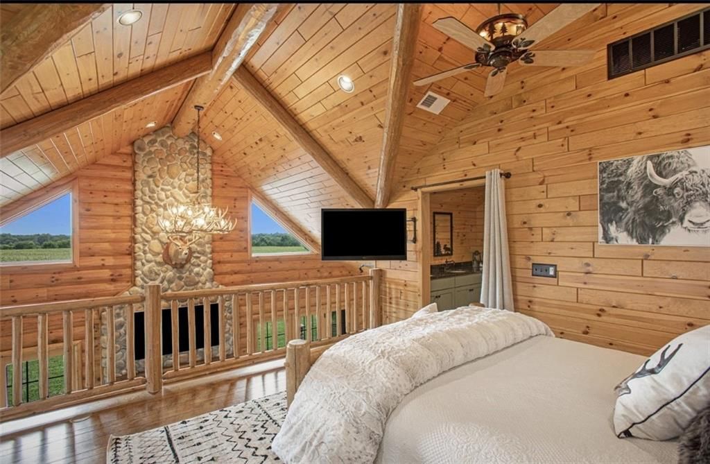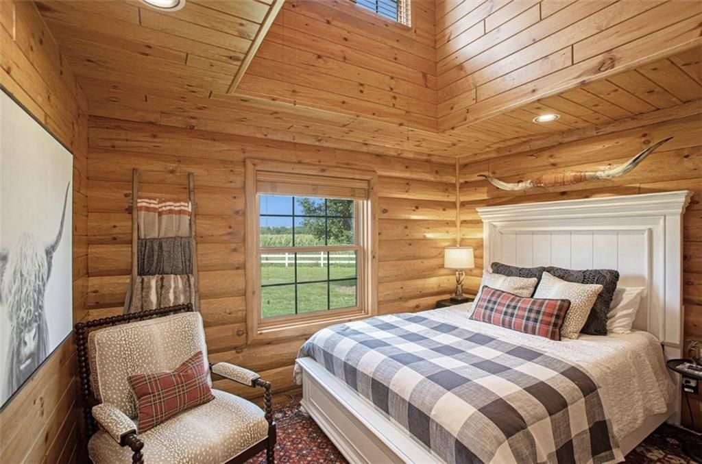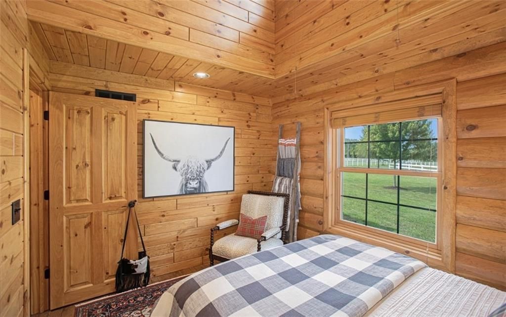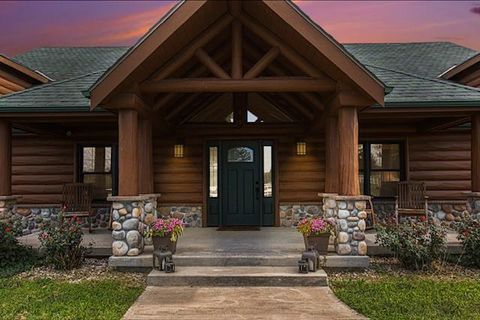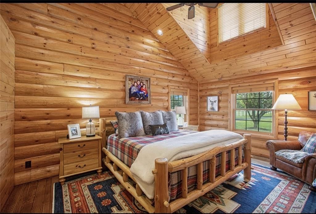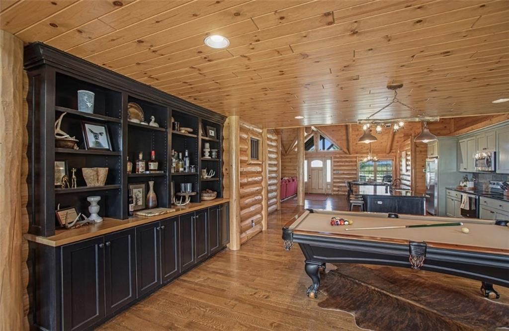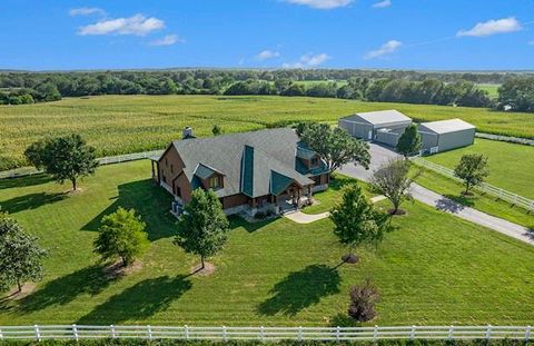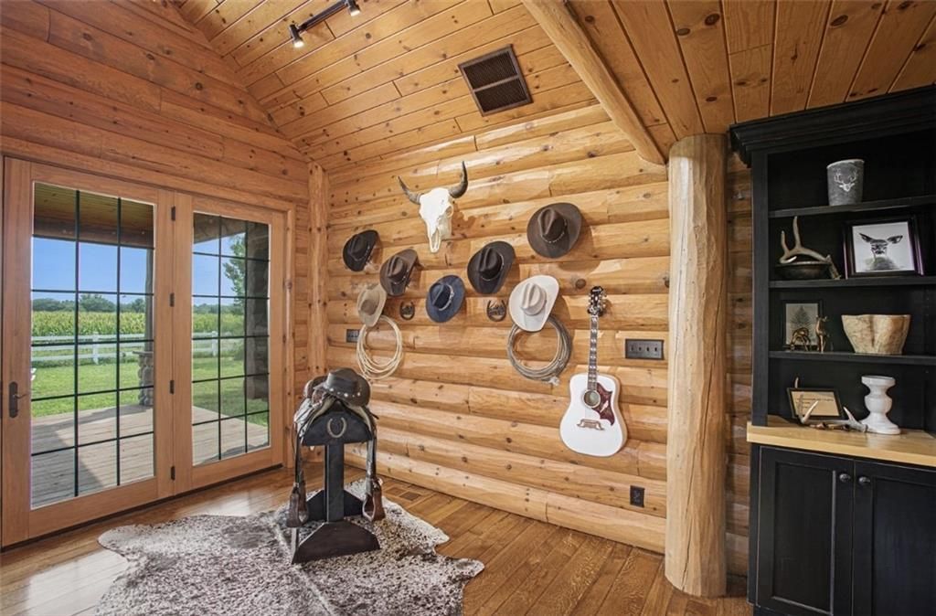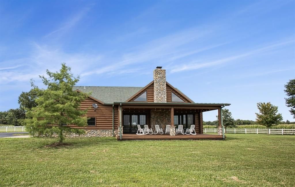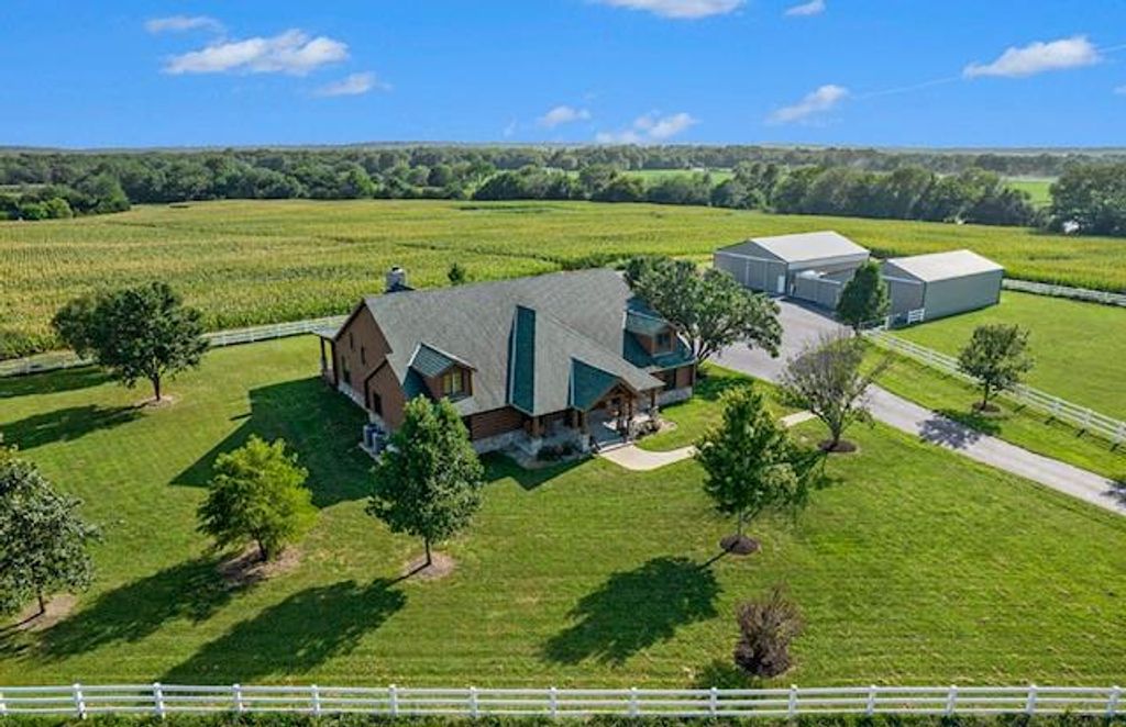 Discover the charm of rustic living at 19295 Highway 52 in Pleasanton, KS. This beautiful log cabin-style home is set on a picturesque 15-acre parcel, offering a perfect blend of natural beauty and modern comfort. The residence features 4 bedrooms and 3 bathrooms, spread over 3,149 square feet of living space, each corner thoughtfully designed with natural wood details and expansive windows that fill the home with light. Inside, enjoy the open-concept layout that seamlessly connects the living, dining, and kitchen areas - ideal for both everyday living and hosting gatherings. The kitchen, equipped with modern amenities, provides a functional space for culinary enthusiasts. The expansive acreage surrounding the home presents endless opportunities for outdoor enjoyment. The land has a beautiful tree line to the west, offering privacy and a sense of seclusion, yet ample open space invites recreational activities. Additional structures include a 40x56 pole barn, a 42x56 barn, and a 8x12 shed, providing versatile options for storage or hobby uses. This log cabin retreat in Pleasanton is more than just a home; it's a lifestyle choice, inviting you to experience the tranquility and beauty of rural living with the convenience of modern amenities. Explore the potential of this unique property today.