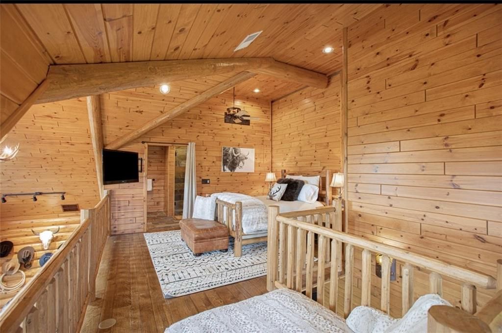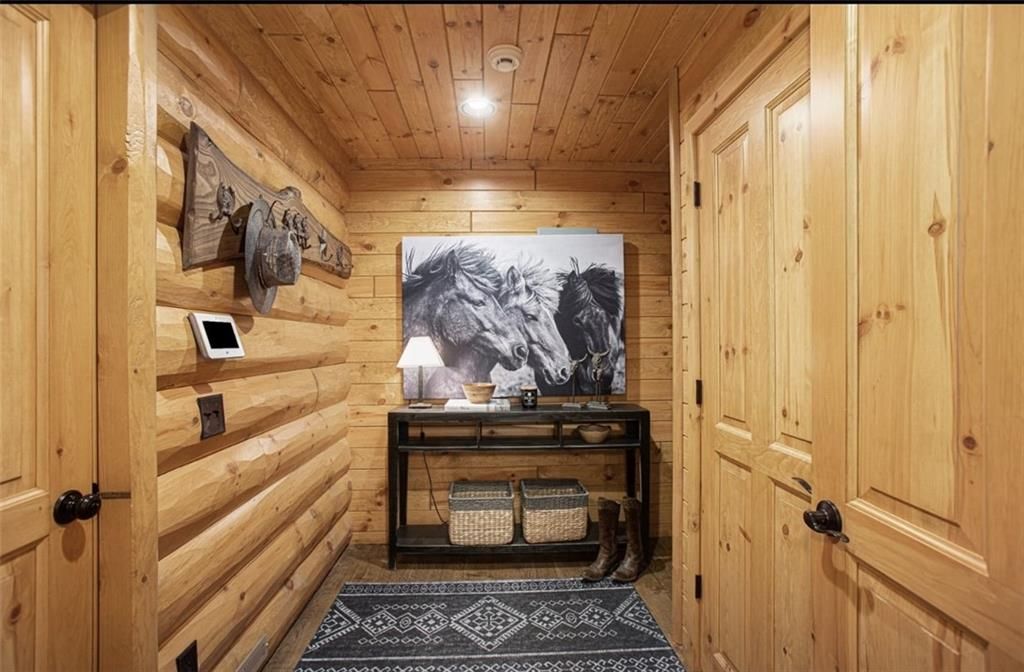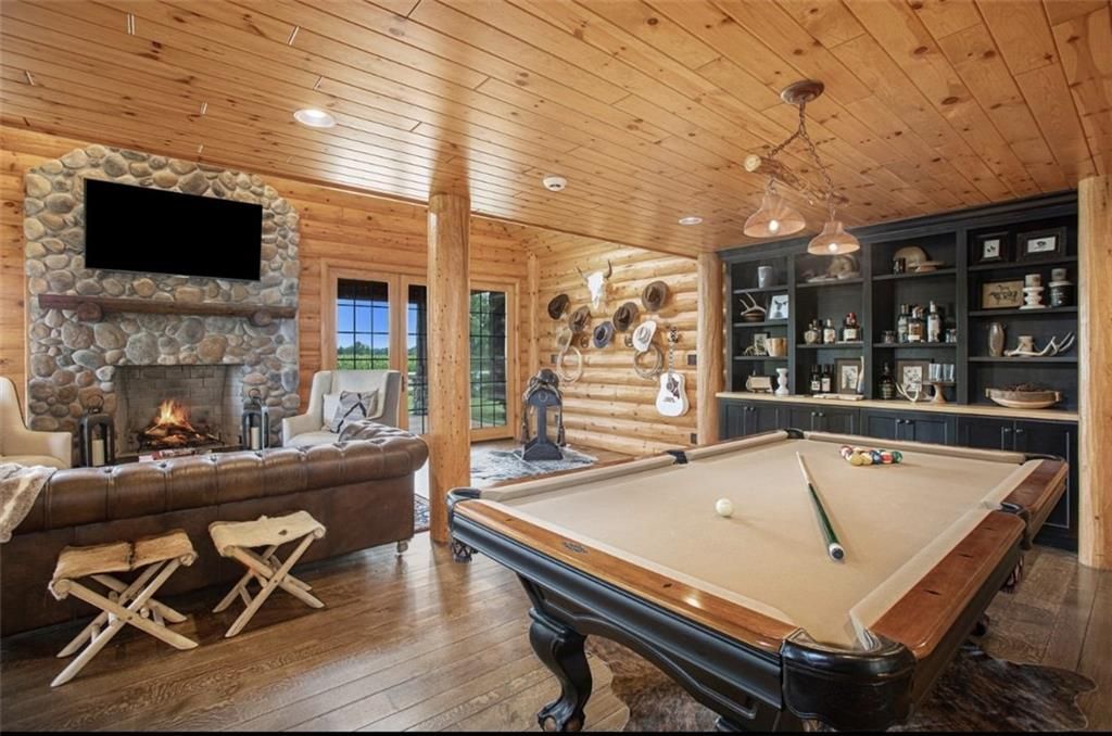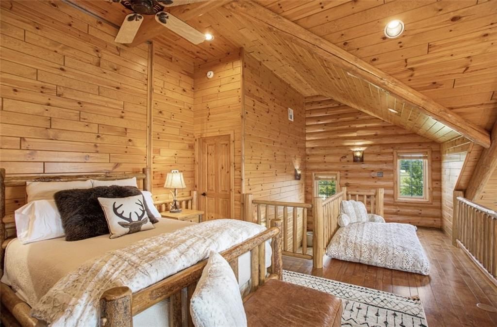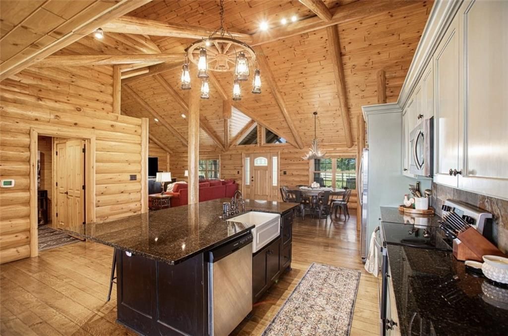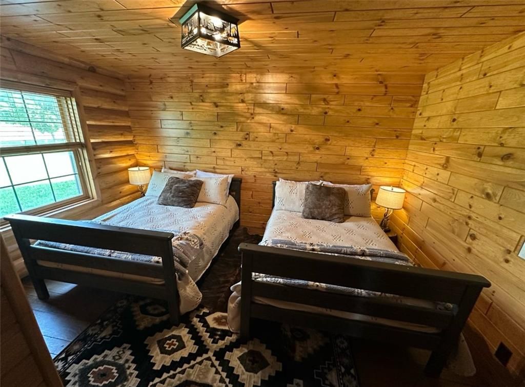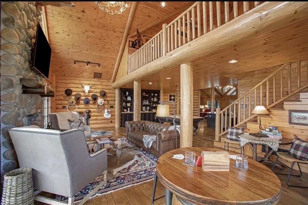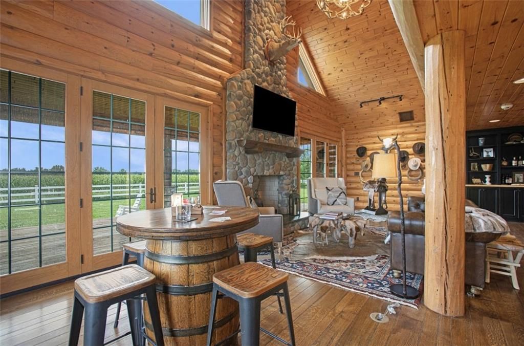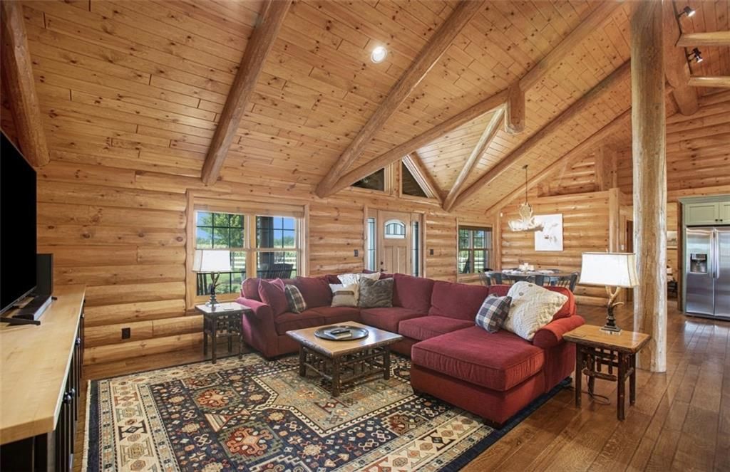 Discover the charm of rustic living at 19295 Highway 52 in Pleasanton, KS. This beautiful log cabin-style home is set on a picturesque 15-acre parcel, offering a perfect blend of natural beauty and modern comfort. The residence features 4 bedrooms and 3 bathrooms, spread over 3,149 square feet of living space, each corner thoughtfully designed with natural wood details and expansive windows that fill the home with light. Inside, enjoy the open-concept layout that seamlessly connects the living, dining, and kitchen areas - ideal for both everyday living and hosting gatherings. The kitchen, equipped with modern amenities, provides a functional space for culinary enthusiasts. The expansive acreage surrounding the home presents endless opportunities for outdoor enjoyment. The land has a beautiful tree line to the west, offering privacy and a sense of seclusion, yet ample open space invites recreational activities. Additional structures include a 40x56 pole barn, a 42x56 barn, and a 8x12 shed, providing versatile options for storage or hobby uses. This log cabin retreat in Pleasanton is more than just a home; it's a lifestyle choice, inviting you to experience the tranquility and beauty of rural living with the convenience of modern amenities. Explore the potential of this unique property today.