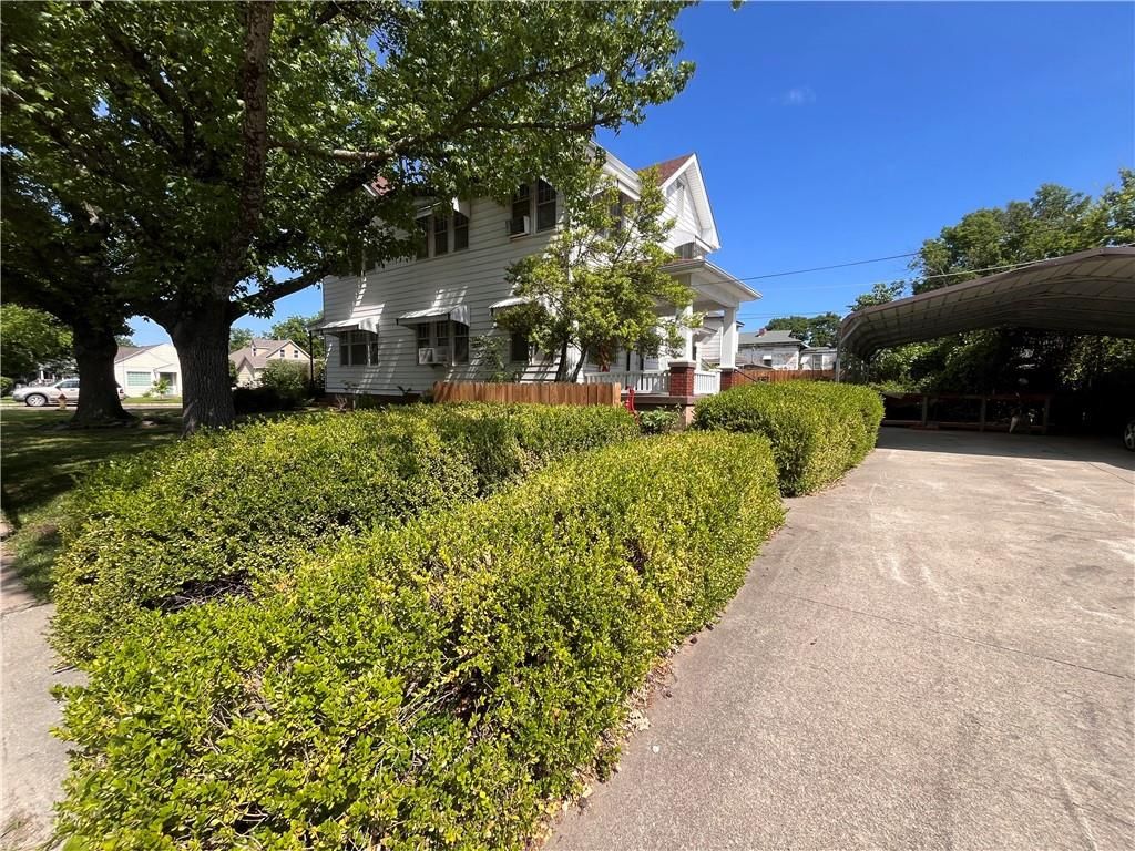 Generous rooms featured in this 4 BR, 2.5 bath Craftsman home, nestled on a corner lot with a "secret garden" for your outdoor enjoyment in the privacy fenced back yard. Historic 1890 charm and craftsmanship mixed with modern updates makes this classic and traditional home a rare find. Sunroom/den as you enter from the front leads into a spacious LR with fireplace. From rear home entry you will find a large butler's pantry that leads into a modern kitchen with granite countertops, butcher-block topped island and stainless appliances. Gorgeous curved stairway leads from LR to upper level bedrooms. Primary bedroom/ensuite, 3 guest bedrooms and 2 full baths. New roof 2016, radiator heat, window and some combo heat/air units, det. garage plus carport. Lovely brick street location near historic downtown. Passenger elevator is NOT HOOKED UP at this time. There's "no place like home". Begin building memories now. Currently tenant occupied. Lease effective until 3/1/2026. Any purchase would assume that lease.