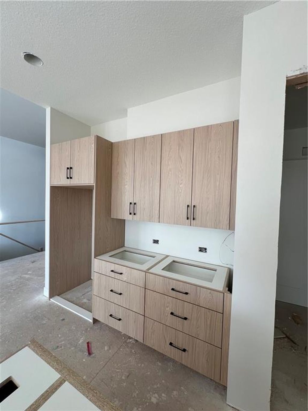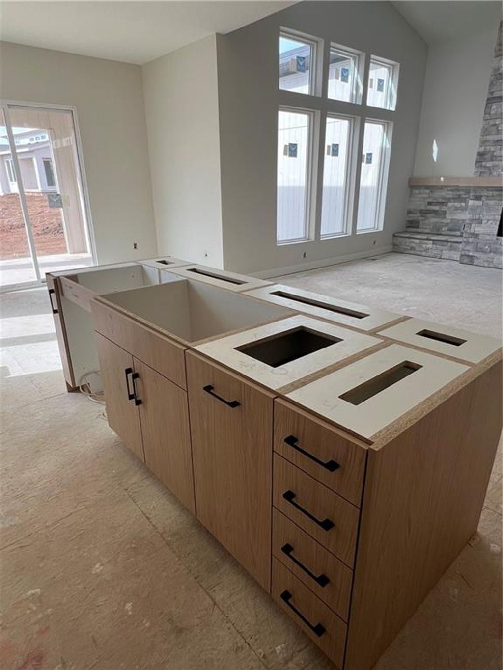 The Hudson Reverse 1.5-story by Rodrock Homes blends modern architecture with everyday livability in Sundance Ridge. Now at cabinet stage, this home showcases the Contemporary Elevation 4 package featuring upgraded garage doors, a 5-panel front door, linear 46" fireplace, metal roof, and black exterior/white interior windows. The open-concept main level highlights a sleek kitchen with large island, walk-in pantry, and designer finishes flowing into the great room with floor-to-ceiling windows and fireplace. The private primary suite offers a spa-inspired bath and walk-in closet, while the finished lower level adds a spacious rec room and two bedrooms. Photos are of a prior model and may show optional features. Enjoy The Village amenities - two pools, clubhouse with fitness center, indoor gym, pickleball, bocce, playground, and trails - in Blue Valley Schools. Just 11 min to Blue Valley High, 8 min to Price Chopper, 16 min to BluHawk, and 16 min to Heritage Park.