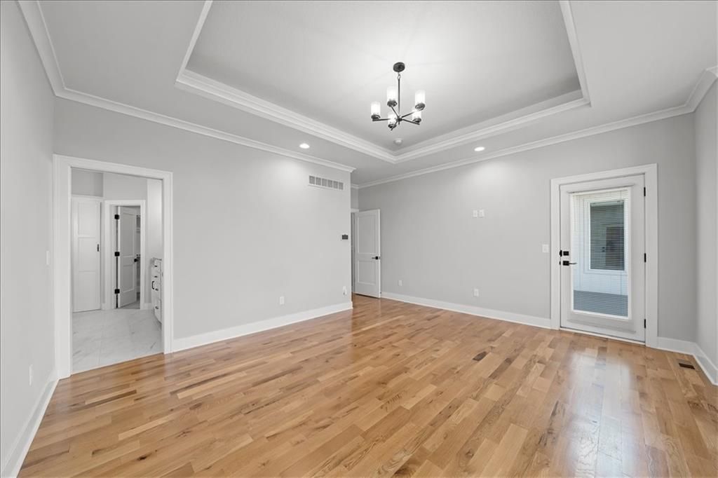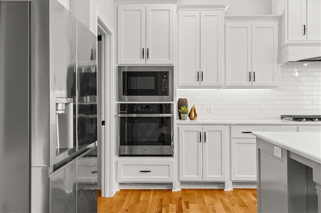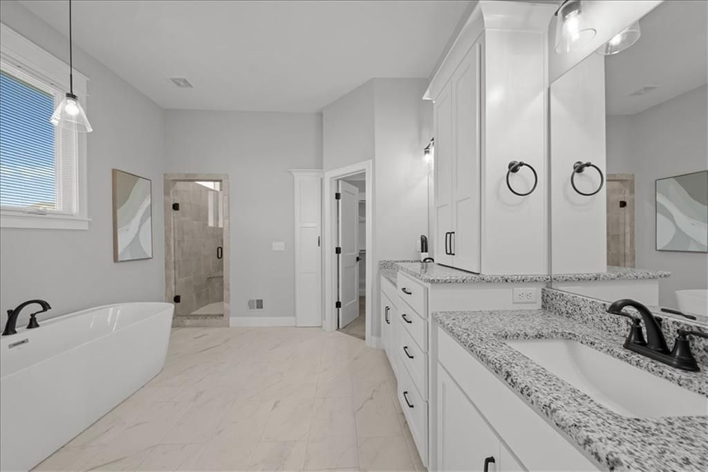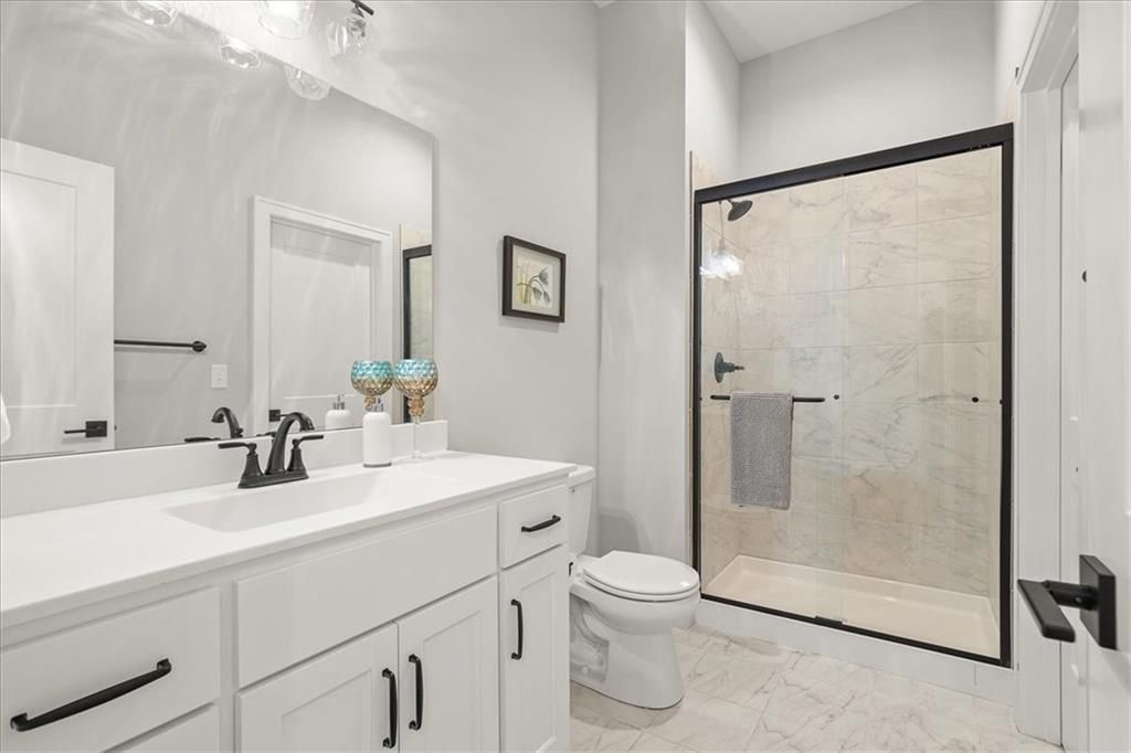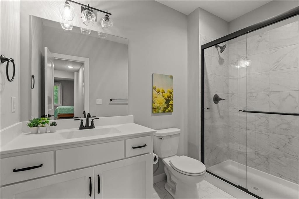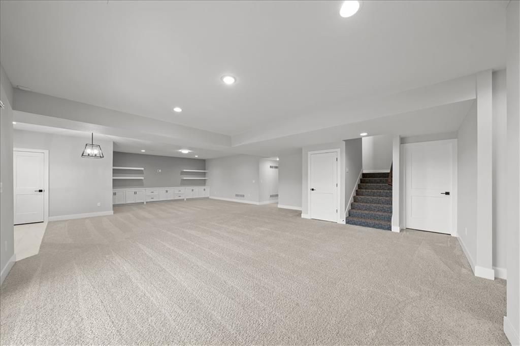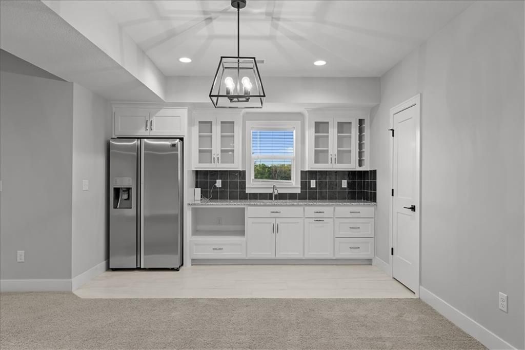 Prepare to be blown away by this incredible home and price in the heart of the award-winning Blue Valley School District. This gorgeous 1.5-story home is priced nearly 200K below county appraisal, offering one of the best values in all of Johnson County for size, condition, and location. Step inside to soaring ceilings, a dramatic two-story stone fireplace, and wide-plank hardwood floors that make an immediate statement. The chef's kitchen is a true standout - complete with an upgraded gas cooktop, custom cabinetry, a massive walk-in pantry with a second oven, and all the space you need for effortless entertaining. The main-level primary suite delivers luxury and convenience with tons of natural light, a spa-inspired bath, and dedicated laundry hookups connected to the huge walk-in closet. Upstairs, every secondary bedroom features its own walk-in closet and private bath, plus a second laundry area. The finished walkout lower level adds even more value with a spacious rec room, wet bar, guest suite with ensuite bath, and an additional half bath. Outdoors, enjoy serene sunsets from the expansive partially covered deck. Neighborhood amenities elevate the lifestyle - resort-style pool, clubhouse, fishing pond, and walking paths - ALL within minutes of top-rated schools, premier shopping, dining, and highway access. Homes like this simply don't come along at this price. Quick closing available - act now to secure one of the best buys in Blue Valley!