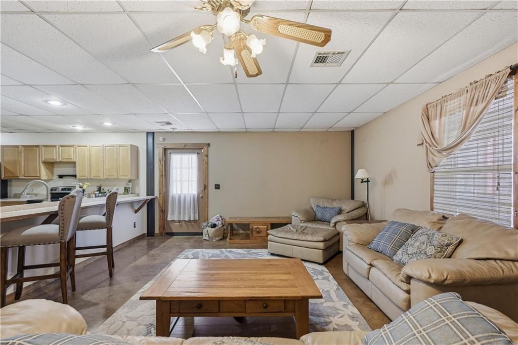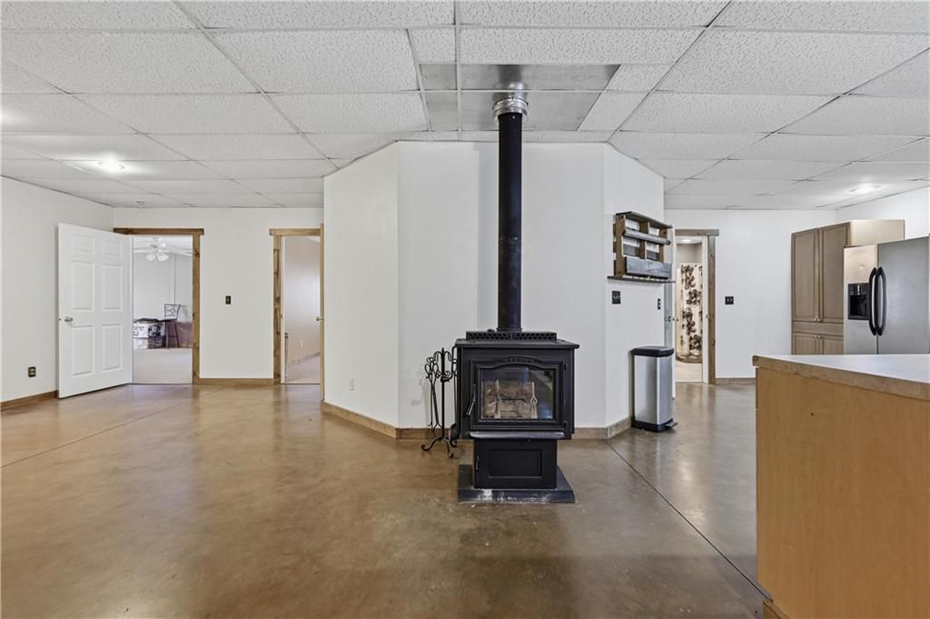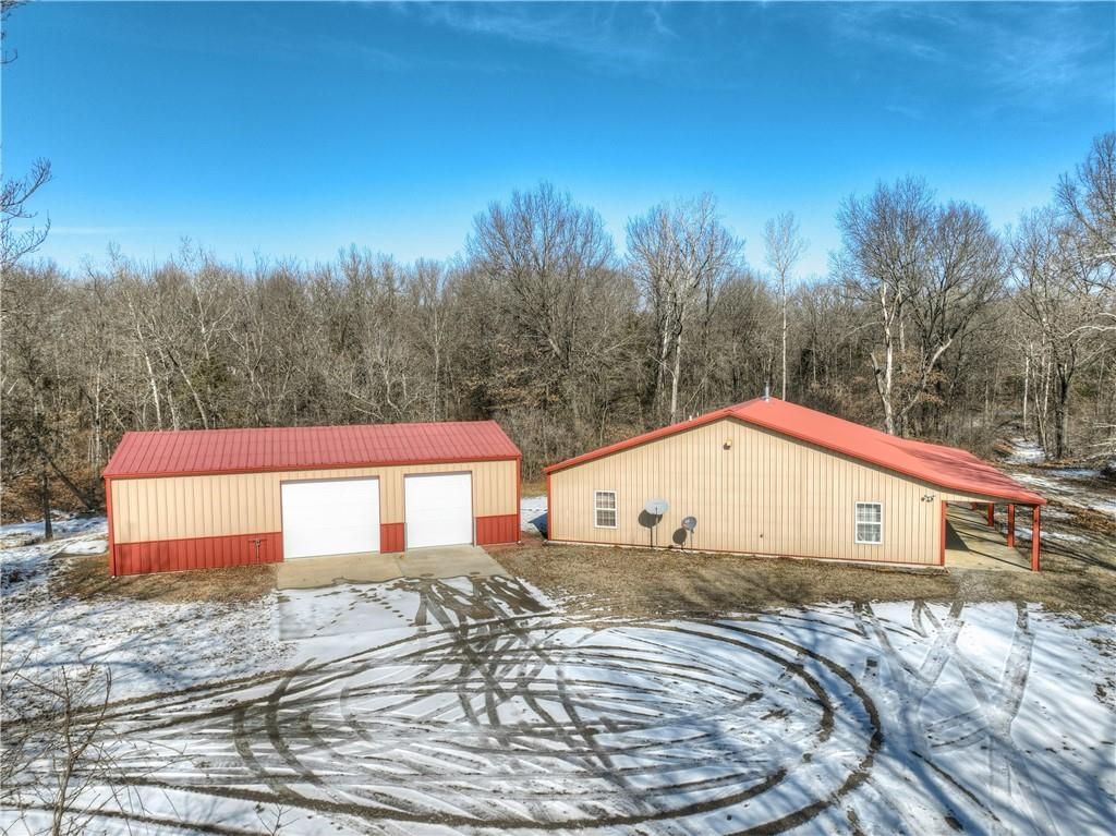 This expansive home, shop, and acreage is priced to sell and ready for a new family. Featuring an open concept floorplan with woodburning stove and unlimited design possibilities. Warm and inviting interior combines rustic charm with modern amenities. Master bedroom suite with walk-in closet and ensuite bathroom. Large bedrooms. Low maintenance metal buildings. Spacious covered front porch/patio area and firepit. Fenced back yard/garden area. New HVAC in 2023. 50' x 30' Red Iron Shop built in 2018. Storm cellar in shop. Mechanic pit feature in shop. Shop is fully insulated. Shop is also stubbed out for plumbing. 27.5 acres of strip pit land. Timber on the property includes a high percentage of oak trees. Beautiful walking trails. Multiple stocked, fishable strip pits throughout the property. Deer, turkey, and waterfowl hunting. Conveniently located just outside of city limits. Seller will divide. This property is a unique blend of rural tranquility and urban convenience. This property is an amazing value and will not be on the market long.