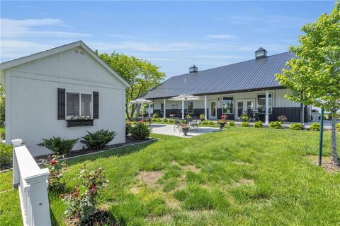 Nestled at the end of a long, private driveway, a meticulously crafted newer home awaits on a sprawling 40 +/- acre estate. This exceptional property offers a harmonious blend of productive income crop ground, mature timber, and grazing pasture, creating a haven of tranquility and natural beauty. Step inside to discover an inviting open-concept floor plan, where soaring ceilings and expansive windows bathe the interior in natural light while framing spectacular panoramic views of the surrounding countryside. The home features two generously sized bedrooms and a well-appointed full bathroom. The fabulous kitchen is a chef's delight, boasting an abundance of stylish cabinetry and elegant quartz countertops. The huge great room, complete with a cozy fireplace, flows seamlessly into a very large dining area, creating an ideal space for gatherings and entertaining. Imagine stepping out from the main living area onto a lovely patio, perfect for enjoying the peaceful surroundings. Adding to the charm is an adorable small outbuilding, offering endless possibilities as a she-shed, an entertainment bar, or a unique retreat. A convenient two-car detached garage provides ample space for vehicles/storage. This is more than just a home; it's an invitation to embrace a lifestyle of privacy and serenity, a world away from the hustle and bustle of city life. Would also be perfect for a getaway! Entertain at your home, then jump into your golf car or UTV and tour the different wineries in the area, go fishing at the State Lake or adventure the beautiful countryside. Move in and immediately begin to enjoy the incredible peace and beauty this remarkable property affords. Don't miss out on this opportunity! Additional 40+/+ acres to the north available. See MLS #2605273.