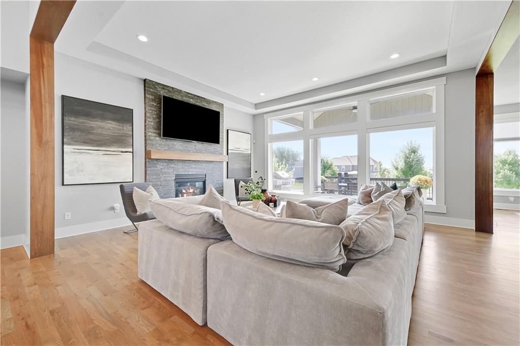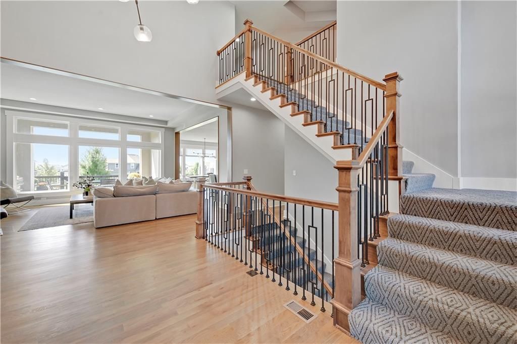 BE PREPARED TO BE IMPRESSED BY THIS MODERN MASTERPIECE! This desirable Hailey home plan embraces luxury and functionality w/6 beds and over 6,000 sq ft of luxurious living space. Step into the main floor and be greeted by the grand foyer with voluminous ceilings and exquisite hardwood flooring throughout. The inviting great room seamlessly connects to a stunning CHEF'S KITCHEN adorned with custom cabinetry, perfect for culinary enthusiasts. Enjoy meals in the dining area that overlooks an expansive and fenced corner lot, with easy access to a covered deck for outdoor relaxation. For those who love to entertain, a second extra-large prep kitchen is equipped with built-in cabinetry, floating shelves, an extra oven, dishwasher + fridg. The back-hall boot niche allows kids to use as a drop zone for backpack's, coats & accessories. Each bedroom on the 2nd floor offers its own private bath and walk-in closet, ensuring comfort and convenience for everyone. The exquisite Primary Suite is a true retreat and offers useful features like a vaulted ceiling, a lavishly designed SPA bath with gorgeous quartz counters, impressive under counter accent lighting and free-standing tub for ultimate relaxation. The primary closet stands out with ample storage and organization options, making daily routines a breeze. The SENSATIONAL daylight finished lower level enhances your lifestyle with a spacious media room (w/ beverage fridg & projection screen TV) a large rec room, cozy fireplace, full gym, and 2nd Primary Suite complete with an oversized, elegantly tiled shower and additional laundry. This home radiates pristine condition, meticulous attention to detail and generous room sizes. The residence is the perfect blend of style and practicality! Situated on the BEST cul-de-sac lot and just a stone's throw from the neighborhood pool/amenity package and award-winning BV school. Lush landscaping, fence & blinds. HURRY on OVER! A value like this won't last long~The same plan sold for 1.325