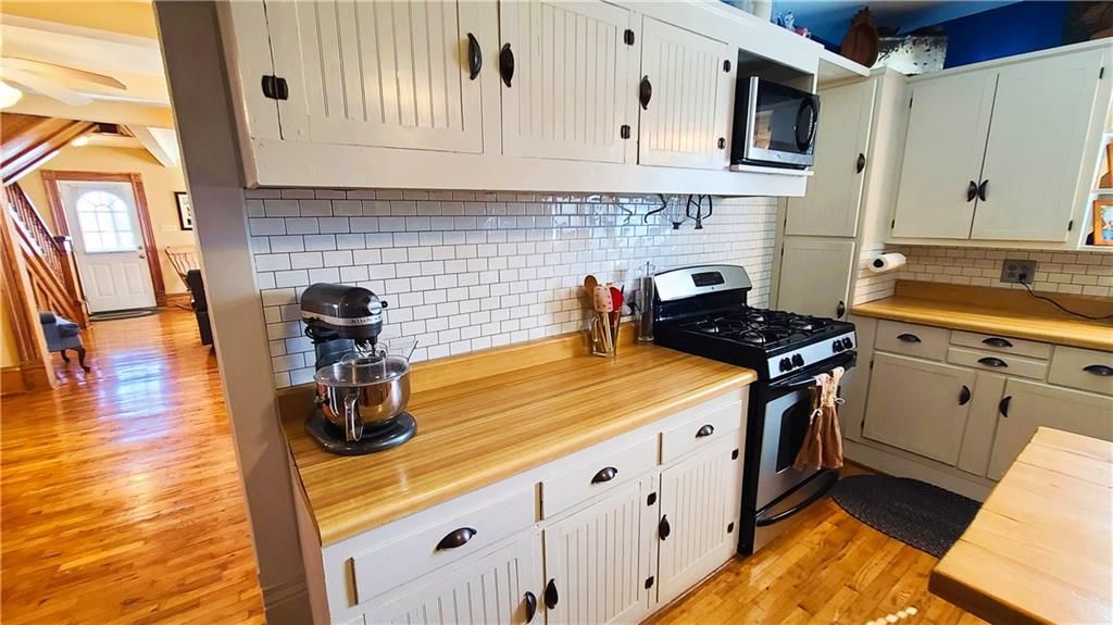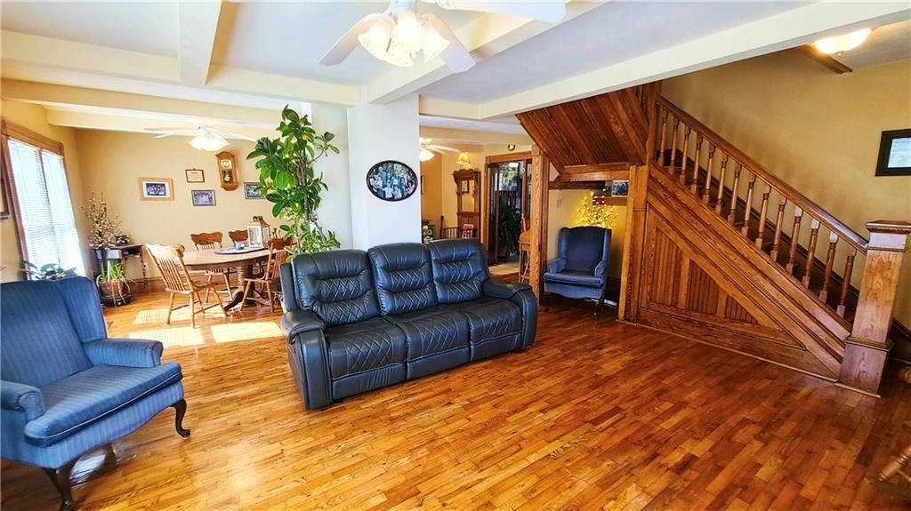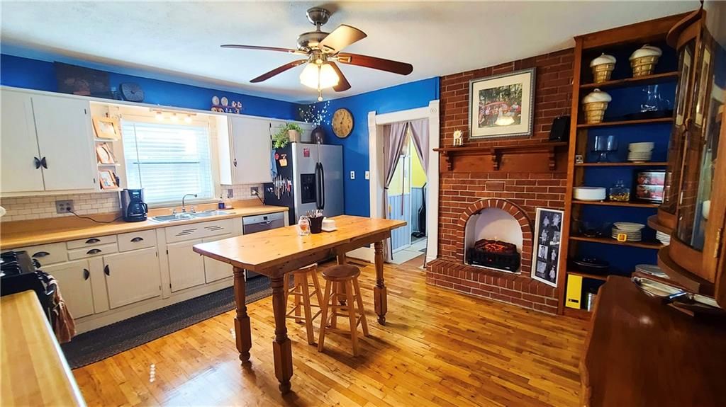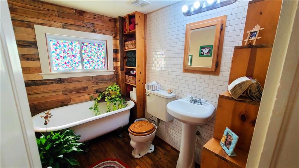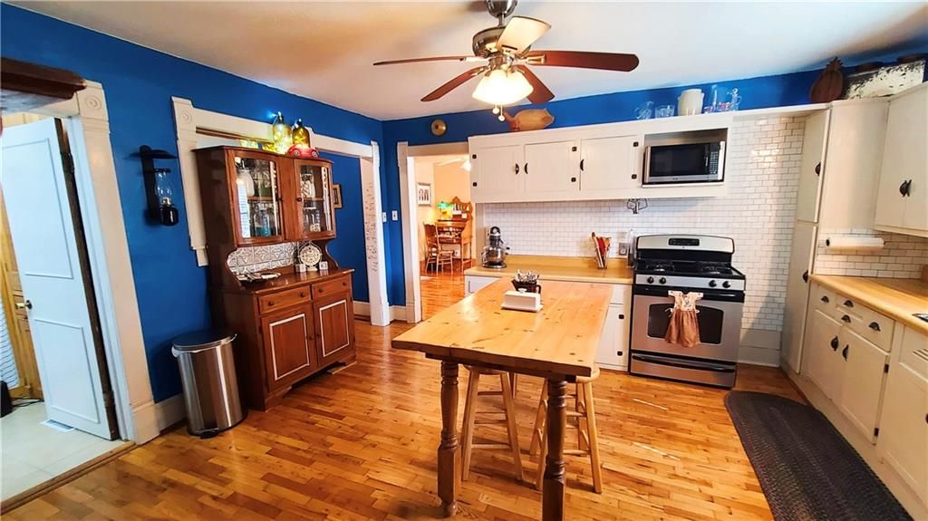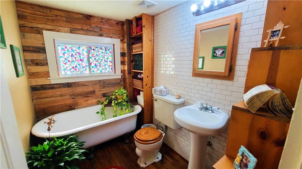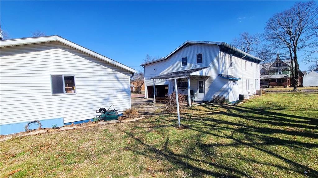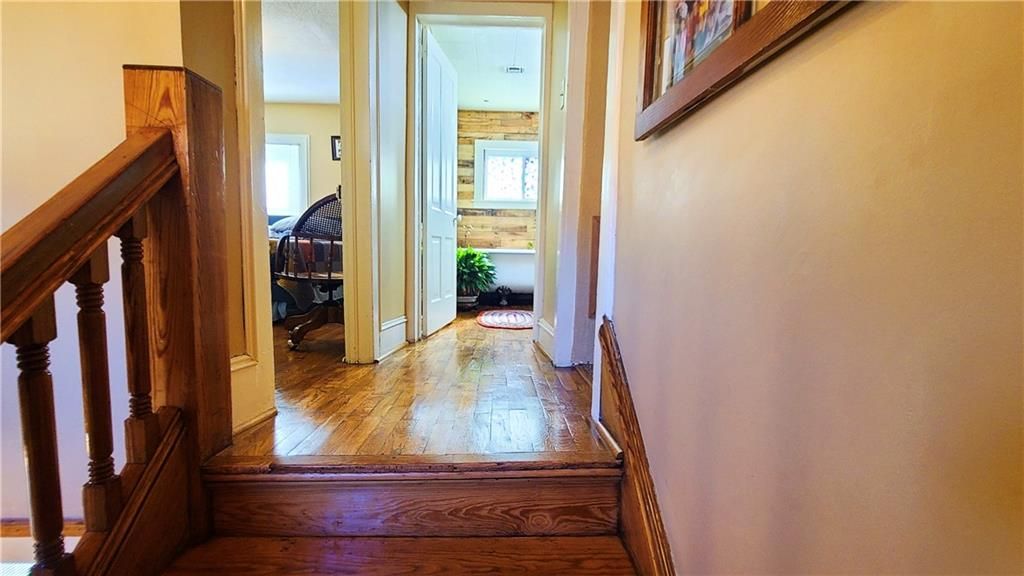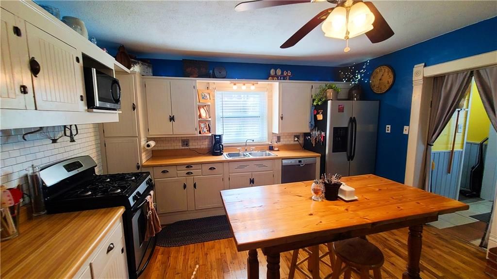 This classic two-story home offers charm and curb appeal galore! Built in 1910, and added onto in 1996, there is a perfect mix of turn-of-the century character and modern updates. Spacious rooms can be found throughout the well-laid out 2,721 square feet. As you approach, you'll be welcomed by the picturesque front porch, complete with a cozy porch swing - the perfect spot to enjoy your morning coffee or unwind after a long day. Step inside, and you'll be greeted by an ornate staircase, the warm ambiance of hardwood floors, and beautiful wood trim through the open concept living and dining space, all highlighted by an abundance of natural light courtesy of the oversized windows. The farmhouse-style kitchen features a perfect blend of functionality and style, and the adjoining mudroom, laundry, and pantry area is convenient and practical. An office is housed on the main floor, and it could easily function as a first-floor bedroom if needed. Additionally, one full bath can be found on each level. Upstairs offers four large bedrooms, as well as a craft room complete with a vintage sink station. Outside, if you are not spending time on the swoon-worth front porch, you can enjoy the covered back patio or open yard space in the adjoining lot to the South, which is included in the sale. With four garage spaces, including a two-car attached and a two-car detached, you'll have plenty of room for your vehicles, storage, or even a workshop. This property has so much to offer the next owner, and its central location ensures easy access to nearby amenities, schools, and entertainment options. Don't miss the opportunity to make this charming and spacious house your own! Welcome home!
