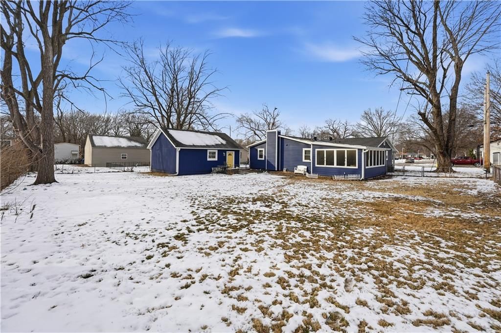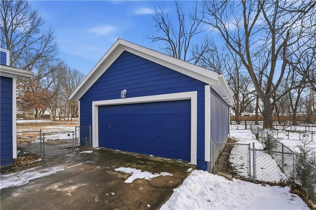 Don't miss this darling 3 bedroom, 2 bath ranch featuring a large 21x26 detached insullated garage with electricity. Special features include NEW windows, low-maintenance Hardie board siding, refurbished hardwood floors, and new laminate flooring. Formal living room and large den (currently used as a 4th bedroom) with a built-in electric fireplace for flexible living space. The kitchen opens to the dining area with French doors leading to a generous screened-in porch, perfect for relaxing or entertaining. All three bedrooms are nicely sized. Outside, enjoy a fully fenced, oversized lot, while the insulated, oversized 2-car detached garage is wired with electricity ideal for a workshop, hobby space, or extra storage. Just steps from the walking trail around Waterworks Lake and a nearby playground, this home offers comfort and convenience in a fantastic location.