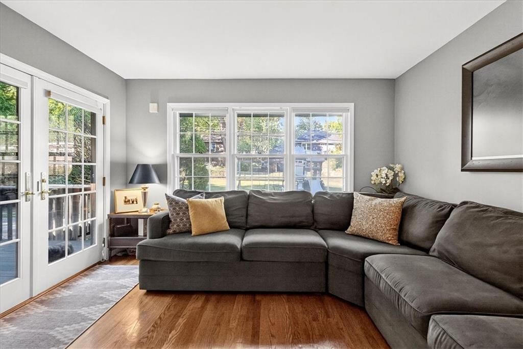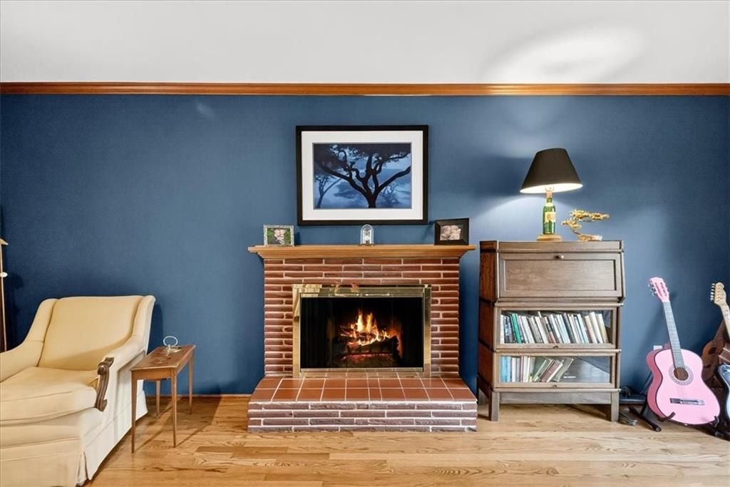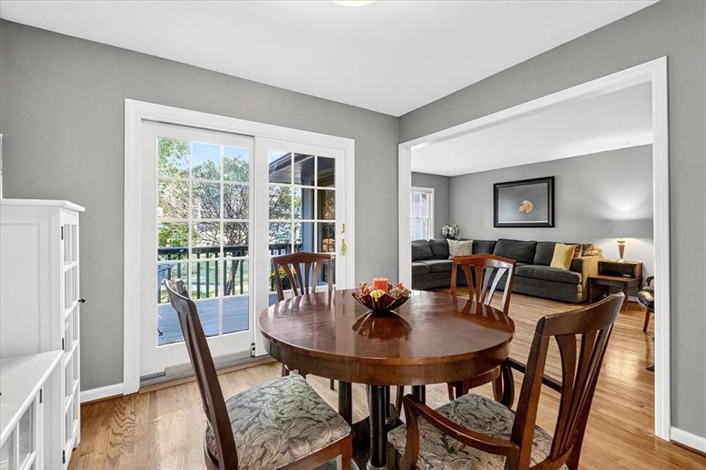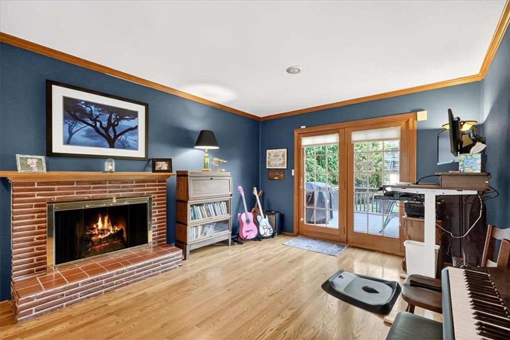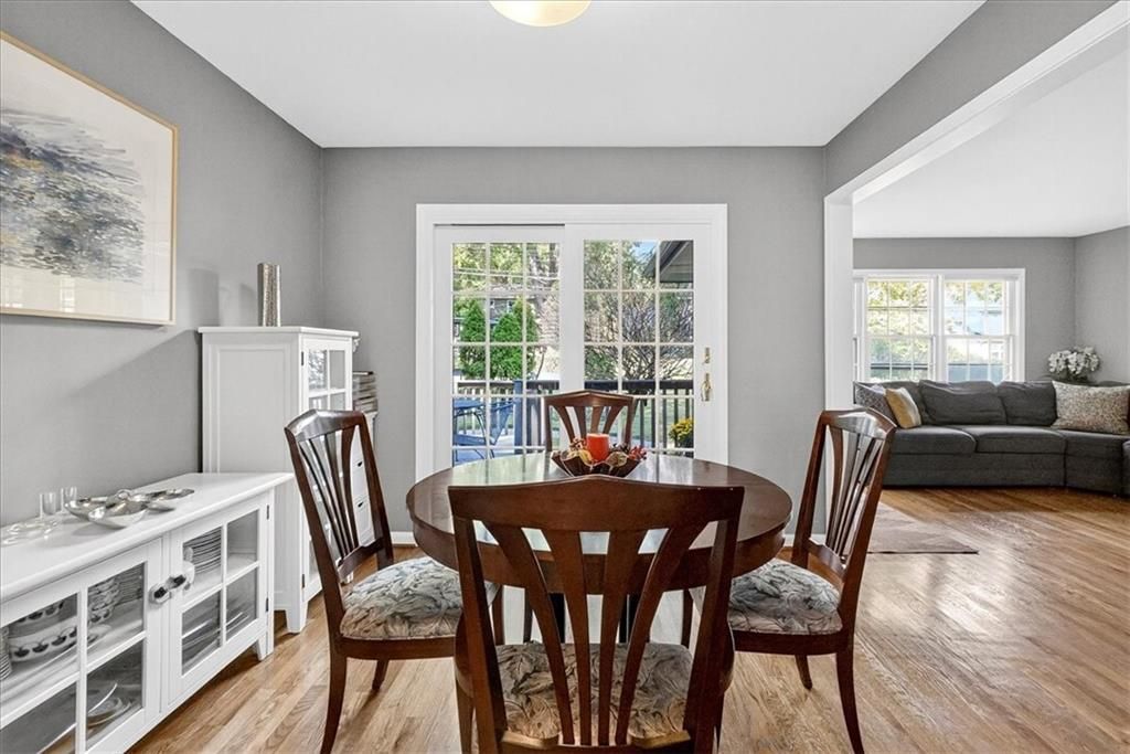 Cute, Quaint, & Full of Charm! This delightful home boasts fantastic curb appeal and is bathed in amazing natural light. Gleaming hardwood floors flow throughout, complementing the home's inviting layout. Enjoy effortless transitions from the kitchen to spacious living areas, all adorned with elegant plantation shutters. The cozy family room features a charming brick fireplace and sliding doors that open to a large deck - perfect for entertaining or relaxing. The private master suite includes its own bath, while the huge fenced backyard offers lush landscaping and plenty of room to play or garden. A true gem inside and out!