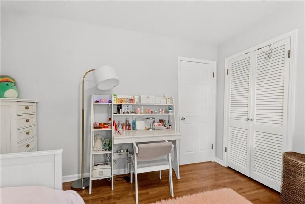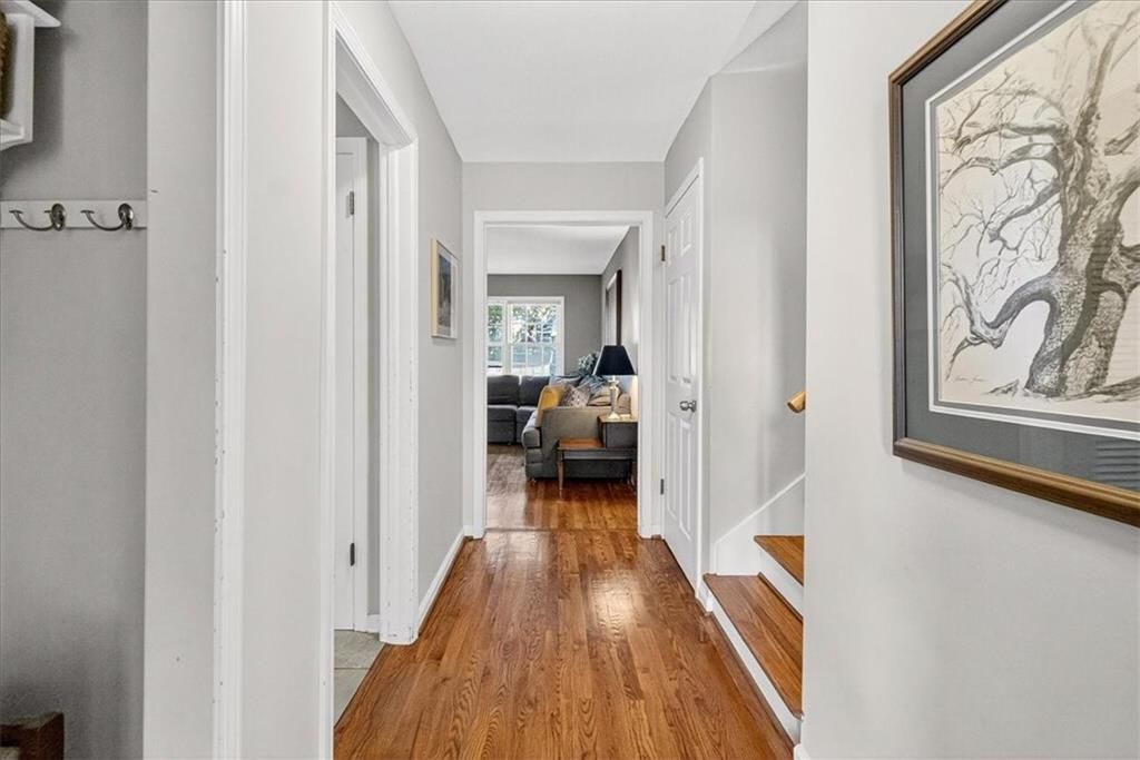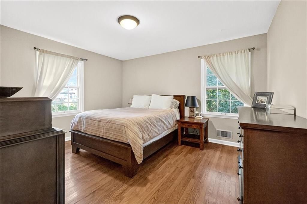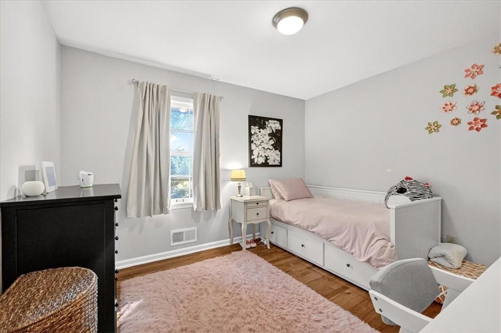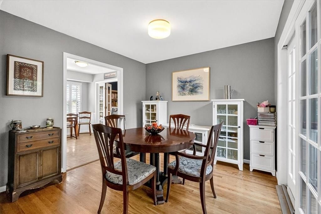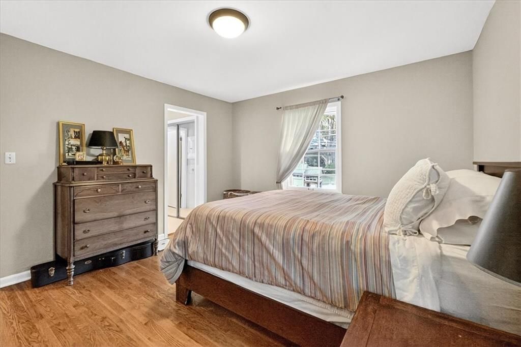 Cute, Quaint, & Full of Charm! This delightful home boasts fantastic curb appeal and is bathed in amazing natural light. Gleaming hardwood floors flow throughout, complementing the home's inviting layout. Enjoy effortless transitions from the kitchen to spacious living areas, all adorned with elegant plantation shutters. The cozy family room features a charming brick fireplace and sliding doors that open to a large deck - perfect for entertaining or relaxing. The private master suite includes its own bath, while the huge fenced backyard offers lush landscaping and plenty of room to play or garden. A true gem inside and out!
