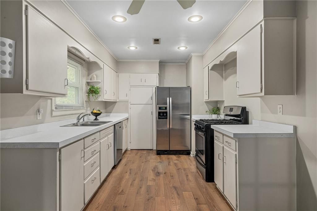 Experience the perfect mix of charm, comfort, and modern updates in this refreshed 3-bedroom, 2-bath ranch, tucked away on a private fenced lot (with private land behind). Located in the heart of Overland Park, this home offers easy access to local favorites, parks, and major highways - making everyday living both relaxed and convenient. Step inside to beautiful hardwood floors and a bright, open living area that flows effortlessly into two bedrooms and a full bath. The brand-new primary suite addition is a true showstopper, featuring a spacious bedroom retreat, massive walk-in closet, convenient laundry area, and a luxurious walk-in shower with a rain head and handheld wand. The kitchen combines classic character with modern function - offering abundant cabinetry, generous counter space, a gas range, and a charming window overlooking the large, fenced backyard. Additional highlights include NEW HVAC, NEW water heater, and freshly painted interior spaces. Just minutes from Old Overland Park, Prairie Village, and Prairie View Park, this home delivers the ideal balance of comfort, style, and prime location.