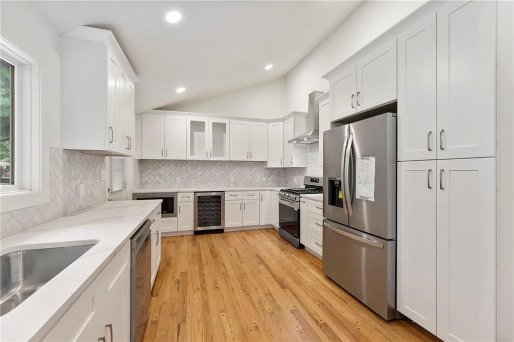 PRIME TIME CENTRAL OVERLAND PARK LOCATION--FULL REMODEL IN BEVERLY ESTATES! Featuring a total of 4 bedrooms with 3 on the main level!!! This beautifully updated home combines modern design with everyday functionality! Main living areas have been opened and vaulted to create a bright, airy atmosphere accented by stunning wood floors. Chef inspired kitchen is a true showstopper featuring quartz countertops, soft-close cabinetry, eat-in peninsula, pantry with pull-out drawers and stainless steel appliances. Step right out to the patio and host effortless BBQs and gatherings! Primary suite offers a private retreat with en-suite bath and two closets. Two additional bedrooms, a second full bath and main-floor laundry complete this level. Finished basement extends the living space with a spacious rec room, huge 4th bedroom with walk-in closet and third full bath. Still plenty of unfinished space remains for storage, workshop or future customization. All of this in a prime central location--just minutes to parks, dining and shopping. WELCOME HOME!