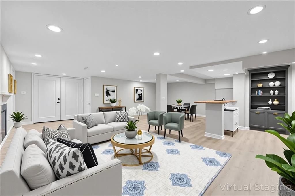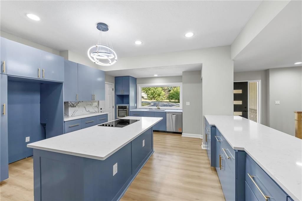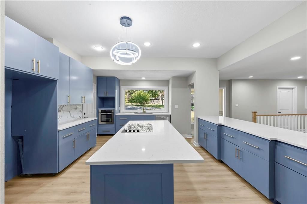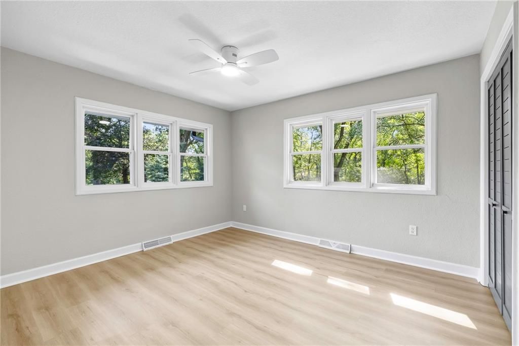 REDUCED!! Check out this complete remodel! This stunning Ranch Reverse has been beautifully renewed from top to bottom. Featuring four bedrooms on the main level, including two with private baths, this home blends modern style with thoughtful design. Enjoy all new luxury flooring, cabinetry, vanities, doors, light fixtures, lighted mirrors, and ceiling fans. Fresh interior and exterior paint, a new roof, deck, patio, and one-sided privacy fence add even more value - NEW Garage door just installed and paved driveway!! TURN-KEY ready, nothing for you to do here but just MOVE RIGHT IN!!! The spacious kitchen offers an abundance of cabinets, a large island, cooktop, stainless appliances, and pantry. The living area centers around a striking fireplace, perfect for relaxing or entertaining. Downstairs, the possibilities are endless with a large rec room and wet bar, an additional bedroom, and a full bath. A built-in bookcase conceals a mystery room - ideal for storage or a fun hidden space! Walk-out basement leads to a covered patio and nearly half-acre lot for plenty of outdoor enjoyment. Great location, not a single stoplight for your commute straight from your driveway to downtown or to the airport, hop right on 635/I35. Shawnee Mission School District!