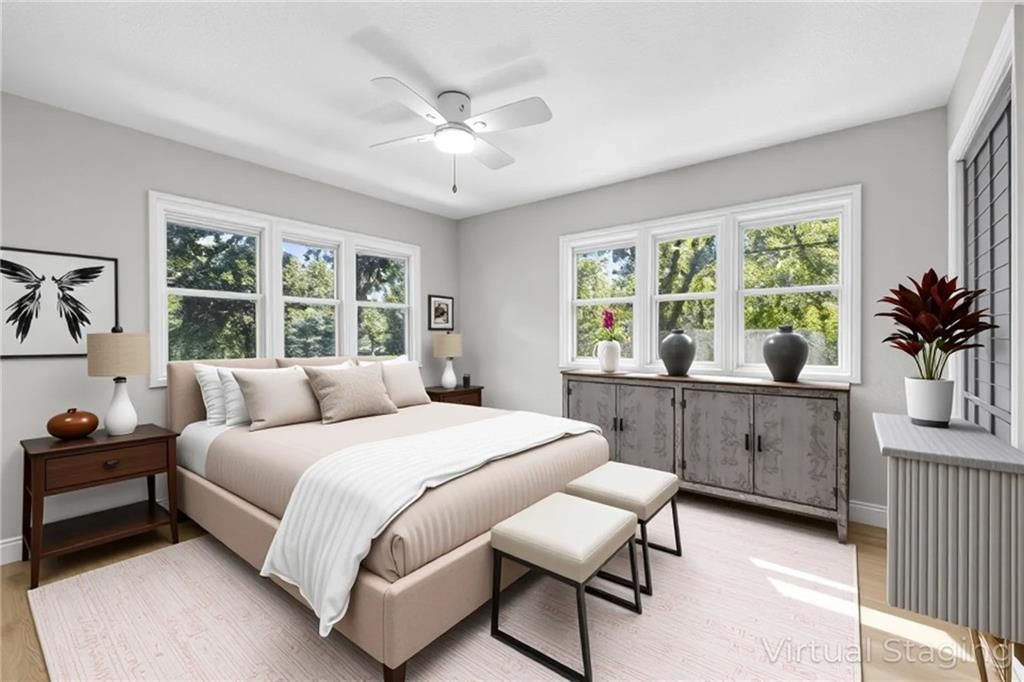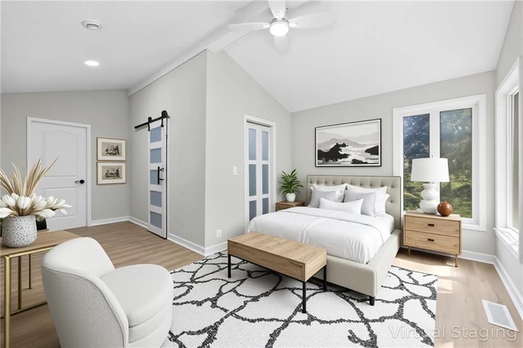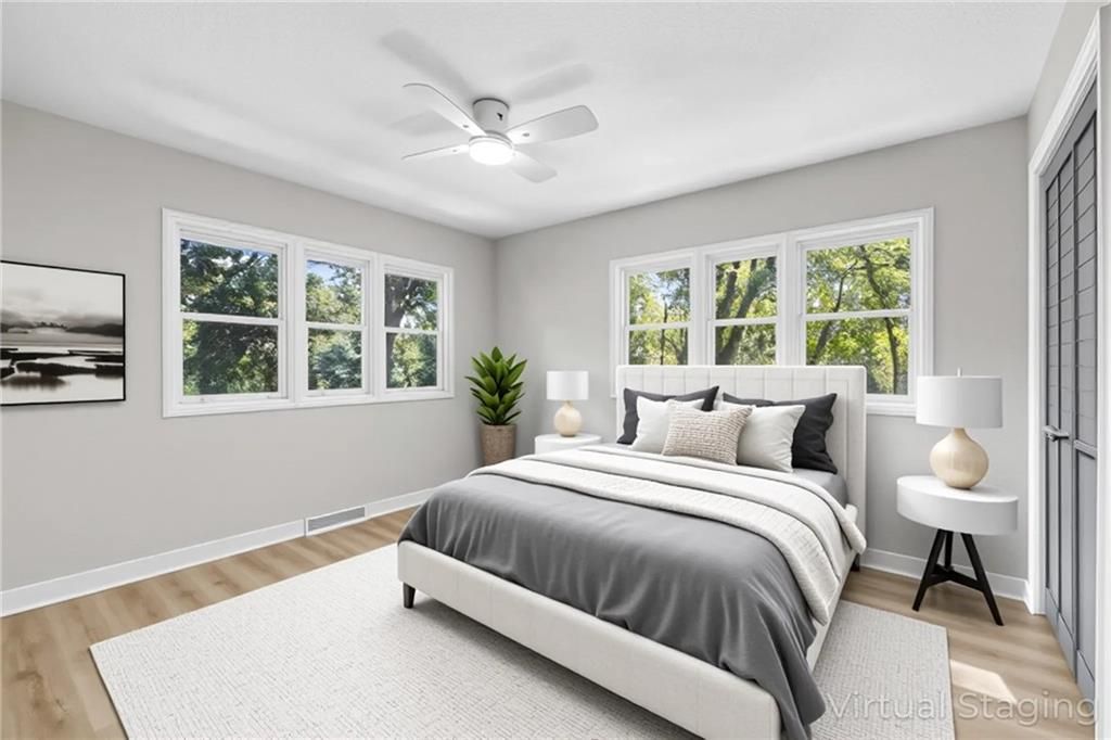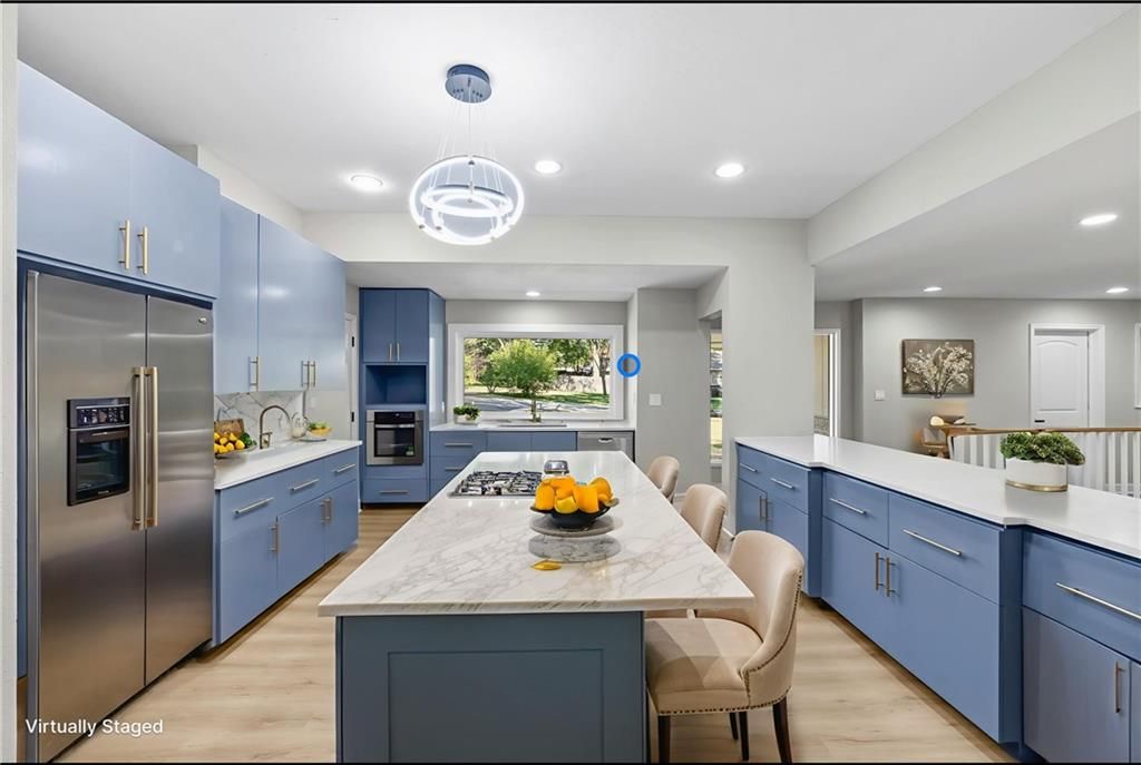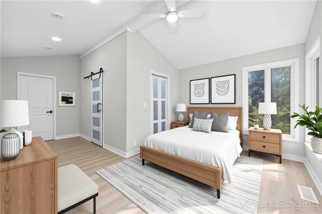 REDUCED!! Check out this complete remodel! This stunning Ranch Reverse has been beautifully renewed from top to bottom. Featuring four bedrooms on the main level, including two with private baths, this home blends modern style with thoughtful design. Enjoy all new luxury flooring, cabinetry, vanities, doors, light fixtures, lighted mirrors, and ceiling fans. Fresh interior and exterior paint, a new roof, deck, patio, and one-sided privacy fence add even more value - NEW Garage door just installed and paved driveway!! TURN-KEY ready, nothing for you to do here but just MOVE RIGHT IN!!! The spacious kitchen offers an abundance of cabinets, a large island, cooktop, stainless appliances, and pantry. The living area centers around a striking fireplace, perfect for relaxing or entertaining. Downstairs, the possibilities are endless with a large rec room and wet bar, an additional bedroom, and a full bath. A built-in bookcase conceals a mystery room - ideal for storage or a fun hidden space! Walk-out basement leads to a covered patio and nearly half-acre lot for plenty of outdoor enjoyment. Great location, not a single stoplight for your commute straight from your driveway to downtown or to the airport, hop right on 635/I35. Shawnee Mission School District!