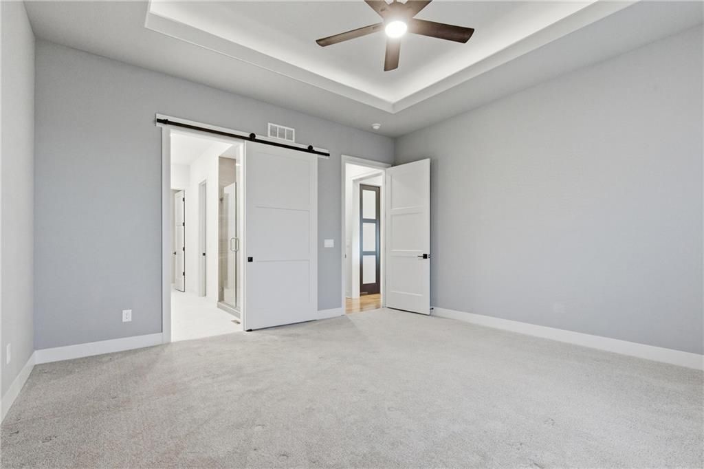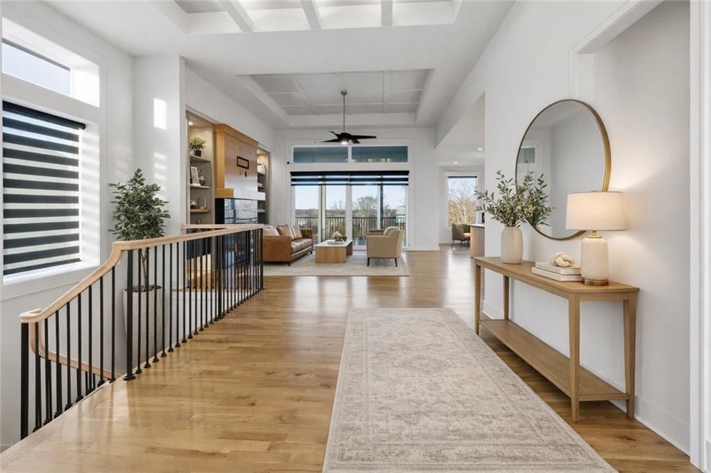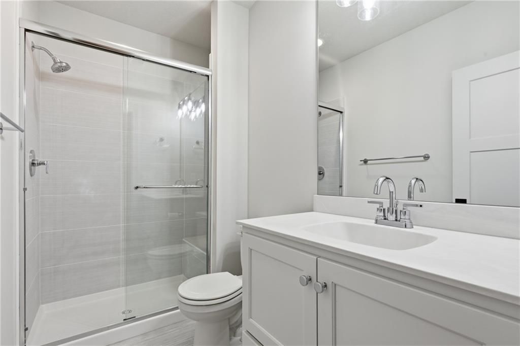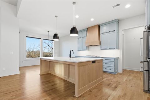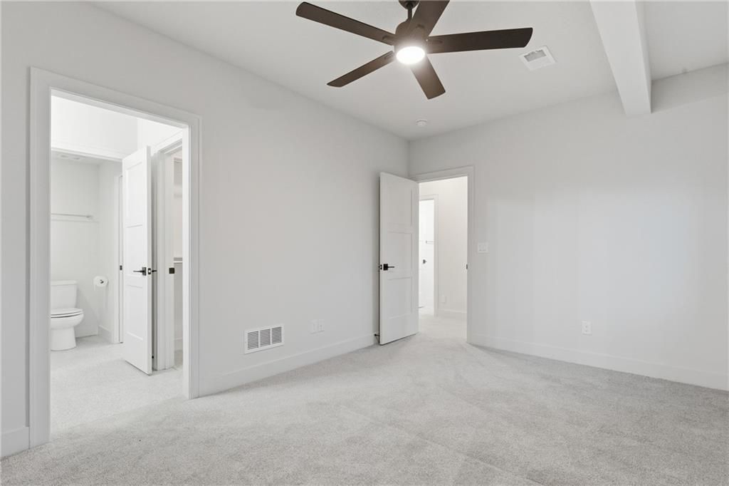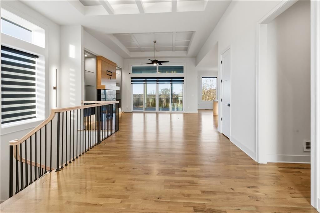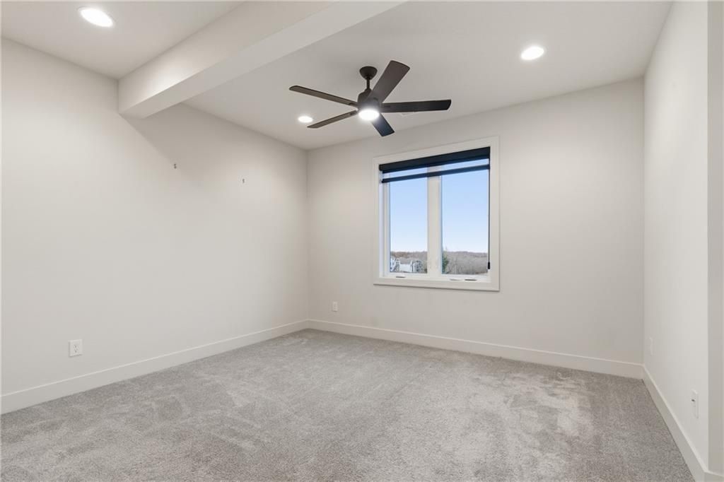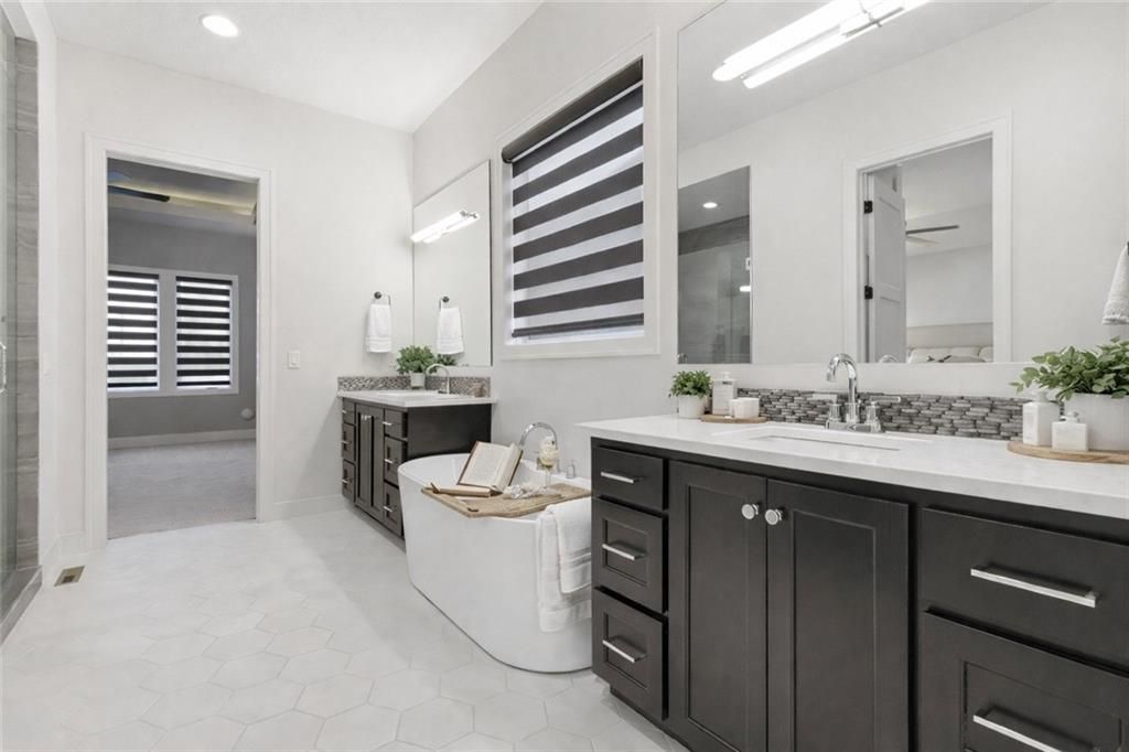 Built in late 2022 by the esteemed Don Julian Builders, this beautifully designed Reverse 1.5 story home is tucked within the premier Bristol Highlands Villas - where maintenance-provided living meets the peace and privacy of rolling hills and protected green space. Just minutes from Shawnee Mission Park, scenic trails and lakes, Lenexa City Center, dining, shopping, De Soto schools, and highway access - yet perfectly secluded - this home truly offers the best of both worlds. Thoughtfully designed for main-level living, the primary suite is a private retreat featuring separate vanities, luxurious soaking tub, walk-in shower with bench, and a spacious walk-in closet with direct access to the laundry room . A stylish powder room for guests and a dedicated office with double doors add both function and flexibility upstairs. The great room features custom built-ins, gas fireplace, and a seamless flow to the covered + screened deck overlooking tranquil green space with privacy! The kitchen - designed for entertaining and everyday living, showcases an oversized island with storage and seating, custom cabinetry to ceiling, quartz, and walk-in pantry. All SS appliances stay, including a newer KitchenAid dishwasher and high-end KitchenAid refrigerator! The walkout lower level is ideal for guests and gatherings, featuring a chic wet bar with beverage fridge, built-in microwave, and island. A cozy family room with slider access to the covered patio is perfect for movie night. One bedroom enjoys easy access to a full hall bath, while 2 additional bedrooms share a Jack-and-Jill bathroom with tub - perfect for hosting family & visitors. Features include high-efficiency HVAC, Lennox smart thermostat, ADT security, automatic privacy screens for the patio and deck, automatic blinds throughout, hardwood floors, and a coveted location backing to community green space. Low-maintenance living. High-end finishes. Don't let this one pass you by - homes like this are truly special.