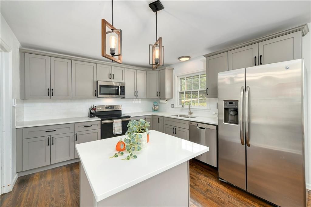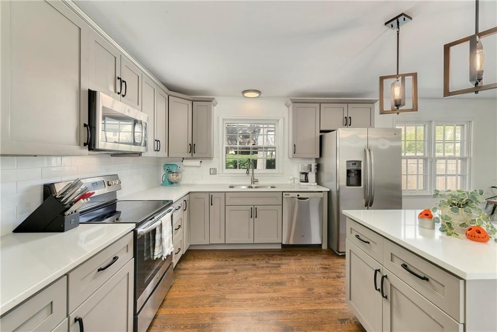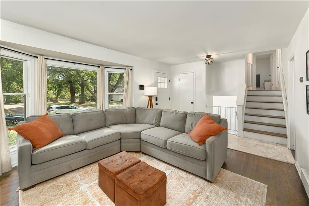 Hurry out to see this one before it is gone! Fully updated with the addition of a front sitting patio and shaded backyard patio this 3 bedroom 2 bath home is located in the coveted heart of Overland Park in Morningview just a quick drive or walk along the tree lined neighborhood to shopping and dining! Step into the light and bright main level with beautiful hardwoods which welcome into an open yet cozy living area that flows into the spacious kitchen and dining full of modern classic updates. The second level continues with hardwoods throughout and offers 2 bedrooms, a full bath along with the master bedroom with en suite! The lower level offers a spacious family room with converted brick fireplace ready for cozy season. A few steps below the family room is an additional finished space perfect for a guest room, home gym, office or anything you may need an additional space for along with a separate laundry and storage area. Established trees, a fenced backyard oasis and a great front porch sitting spot only add to all the feels of this wonderful home..let's make it yours!