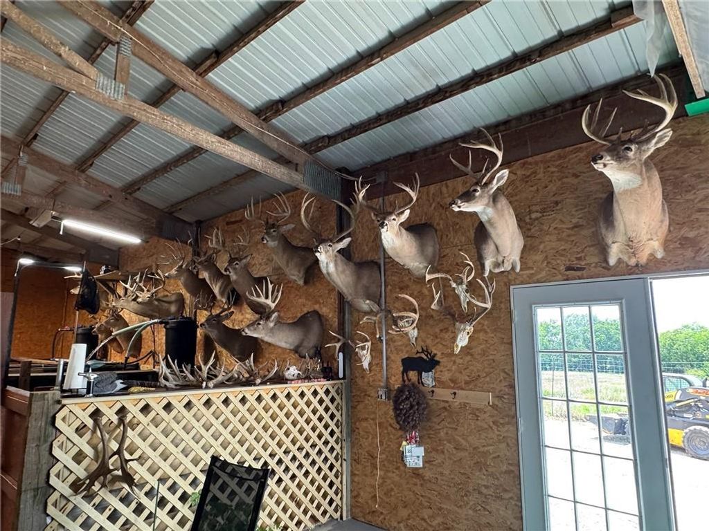 This beautiful 320 acre ranch offers a rare chance to own a premier high-fence trophy hunting preserve. Of the total acreage, 212 acres are high-fenced, home to 30+ trophy whitetail bucks and 40+ mature fallow deer in all three color phases. Whitetail herd includes Blosser Origination Stock - Top 30 Whitetail Breeder - with does tied to 200"+ bucks. The property also features a stocked pond, food plots, and 8+ miles of trails. Game management includes six feeders, blinds, and stands. A 5-bed, 2-bath slab home offers 1,750 sq ft of rustic living space and conveys partially furnished. The 30'x80' barn has power, water, and potential as a second lodge. Diverse terrain includes timber, pasture (convertible to crop ground), and a fruit garden with berries and asparagus. With proven genetics, income potential, and luxury accommodations, this turnkey property is ideal for the serious hunter or investor.