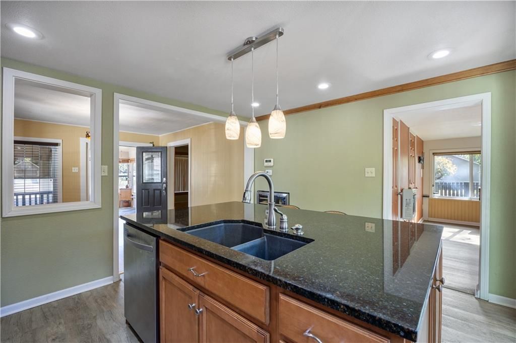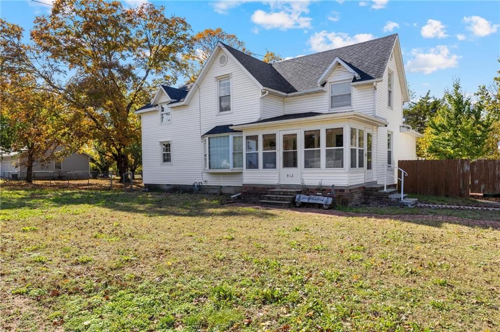Step inside this timeless, well-appointed house, and you'll instantly feel at home! Nestled in with mature trees on an expansive 0.90 acre lot, conveniently located in the middle of town, this large 2-story residence and 3 car detached garage/shop are a rare find! Contemporary elegance blends with traditional, classic finishes throughout the 2,092 square feet of living space which boasts 3-bedrooms, 2-bathrooms, an office area, and great flex space that could be a 4th bedroom. Inside, enter through the front sunroom, and you'll find the spacious living area that flows into the kitchen and dining spaces, creating an inviting atmosphere for family and friends to gather. You'll love the updated kitchen, showcasing solid wood cabinetry, granite countertops, stainless appliances, and a large center island. The office/den is right off the kitchen, and both rooms have sliding glass doors going out to the deck and patio area, which is complete with a hot tub and outdoor stone fireplace. There are bedrooms housed on both levels, each offering plenty of comfort and storage, and the beautifully updated bathrooms, one on each floor, add a touch of luxury to everyday living. While the home has had many cosmetic updates, it has had a plethora of practical updates as well -- the roof is less than one year old, a new tankless hot water heater was recently installed, and both HVAC systems are less than 5 years old. Outside, enjoy a fantastic backyard with two separated fenced areas - ideal for barbecues, play, gardening, or simply relaxing with plenty of room surrounding you. The garage has an attached shop area in the back, and a lean-to with double drive-through doors on the side, making it incredibly versatile for any of your needs. With so much to offer, and no shortage of curb-appeal, space, or functionality, this property is a dream!